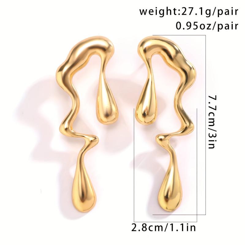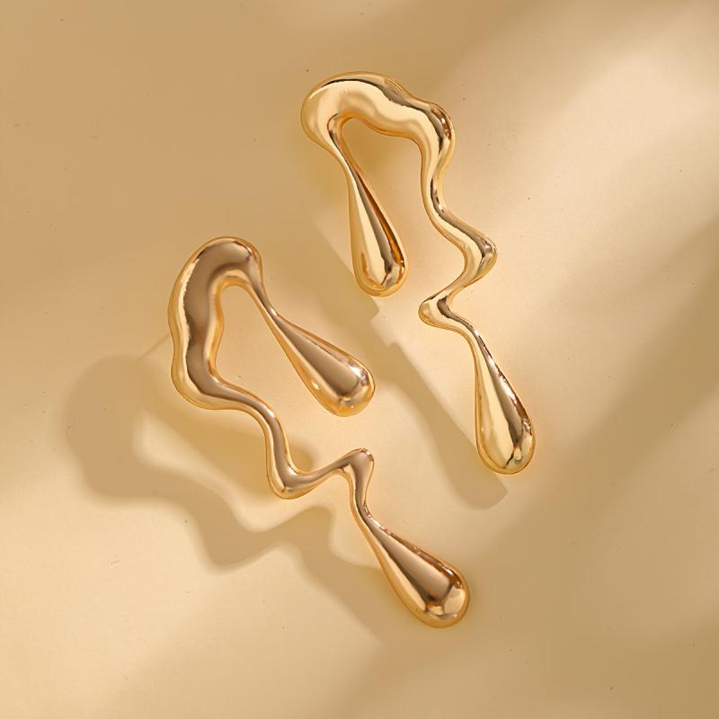 These irregular golden earrings are the perfect accessory for parties. Their minimalist style adds a touch of elegance to any outfit.