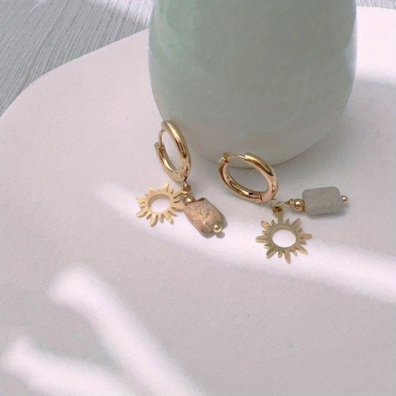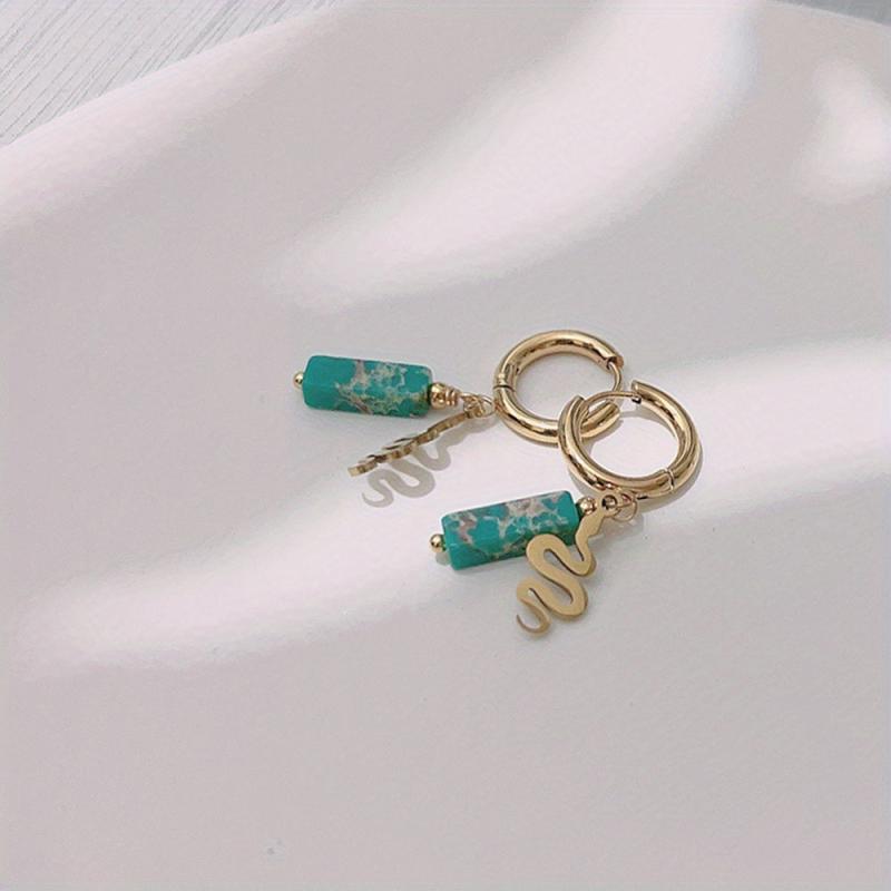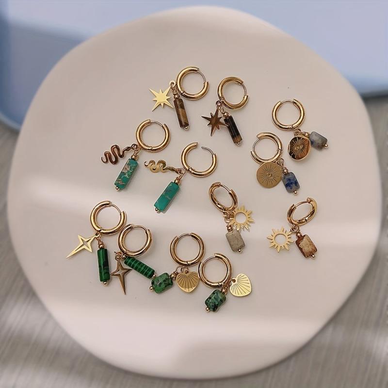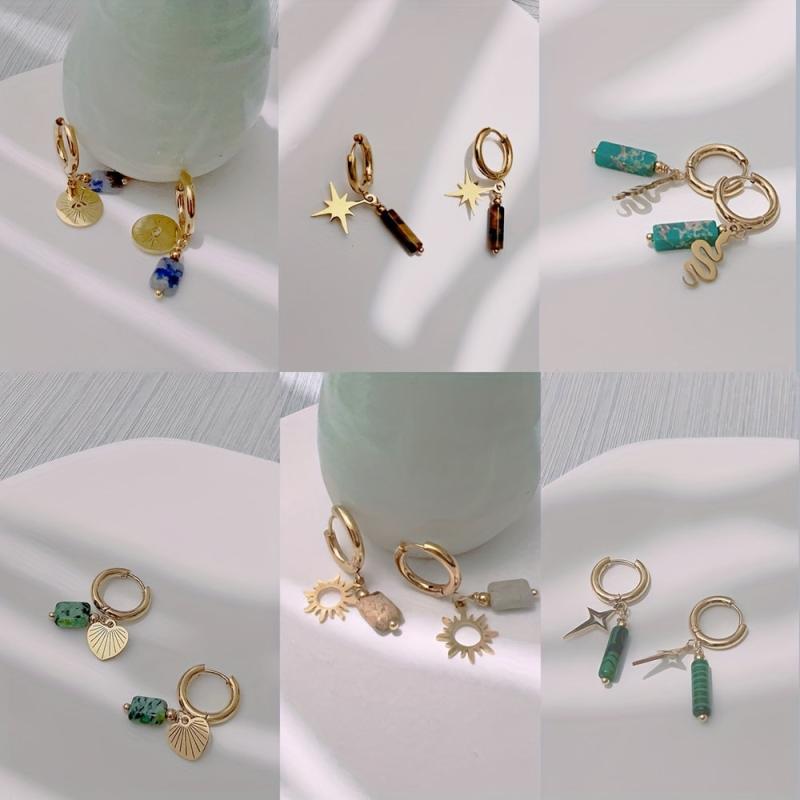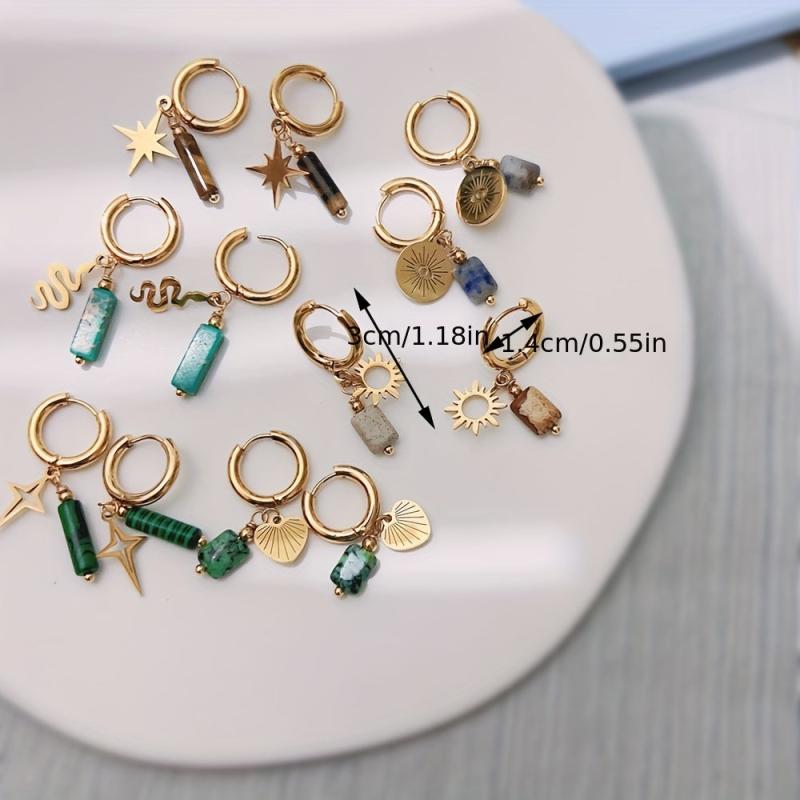 Add a touch of boho chic to your outfits with these natural irregular stone pendant earrings. Crafted from stainless steel with a 18K gold plated finish, these earrings make a stylish and unique gift for any jewelry lover.
