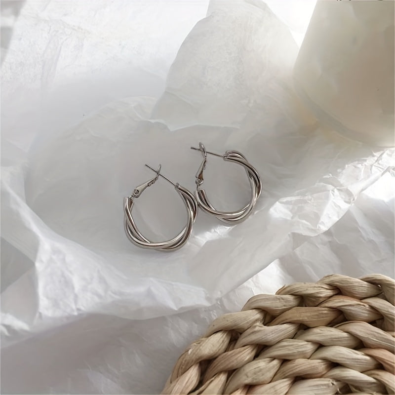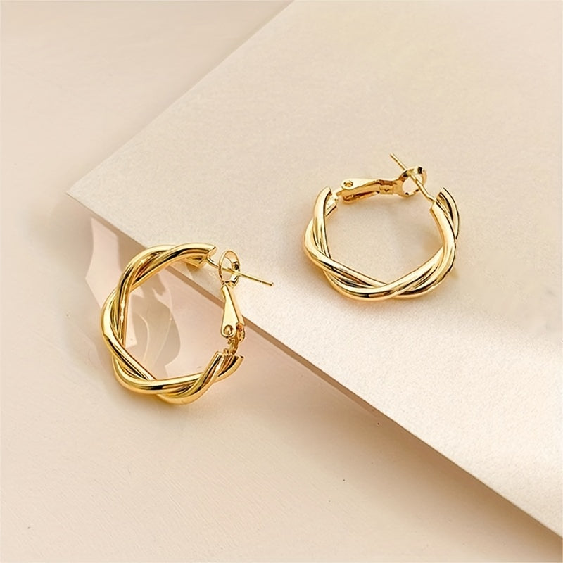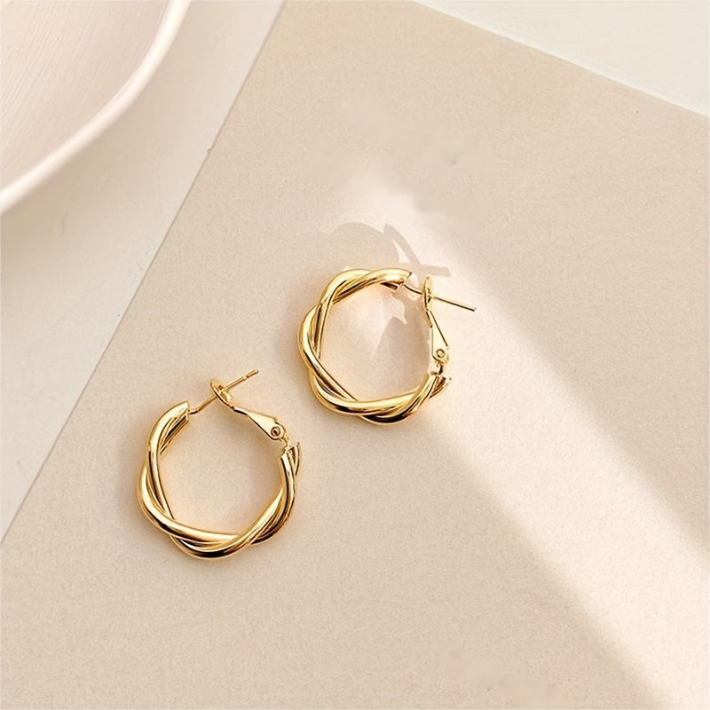 These golden and silvery twisted hoop earrings are a beautiful Japanese style accessory crafted from alloy. They make a perfect gift for women and girls who love elegant and sophisticated jewelry.