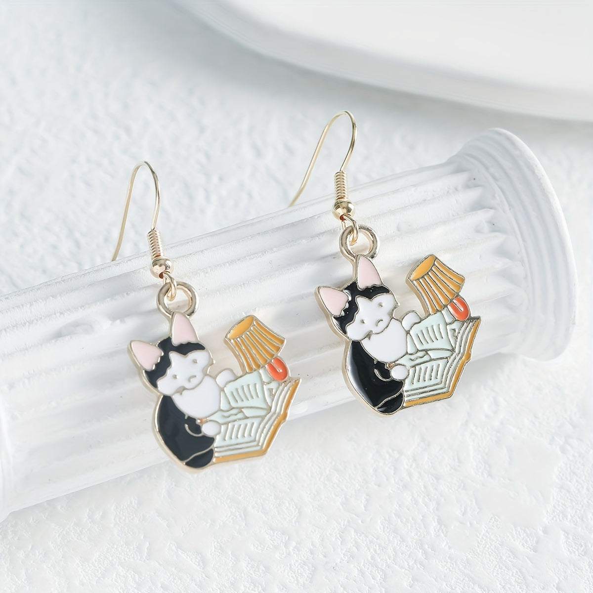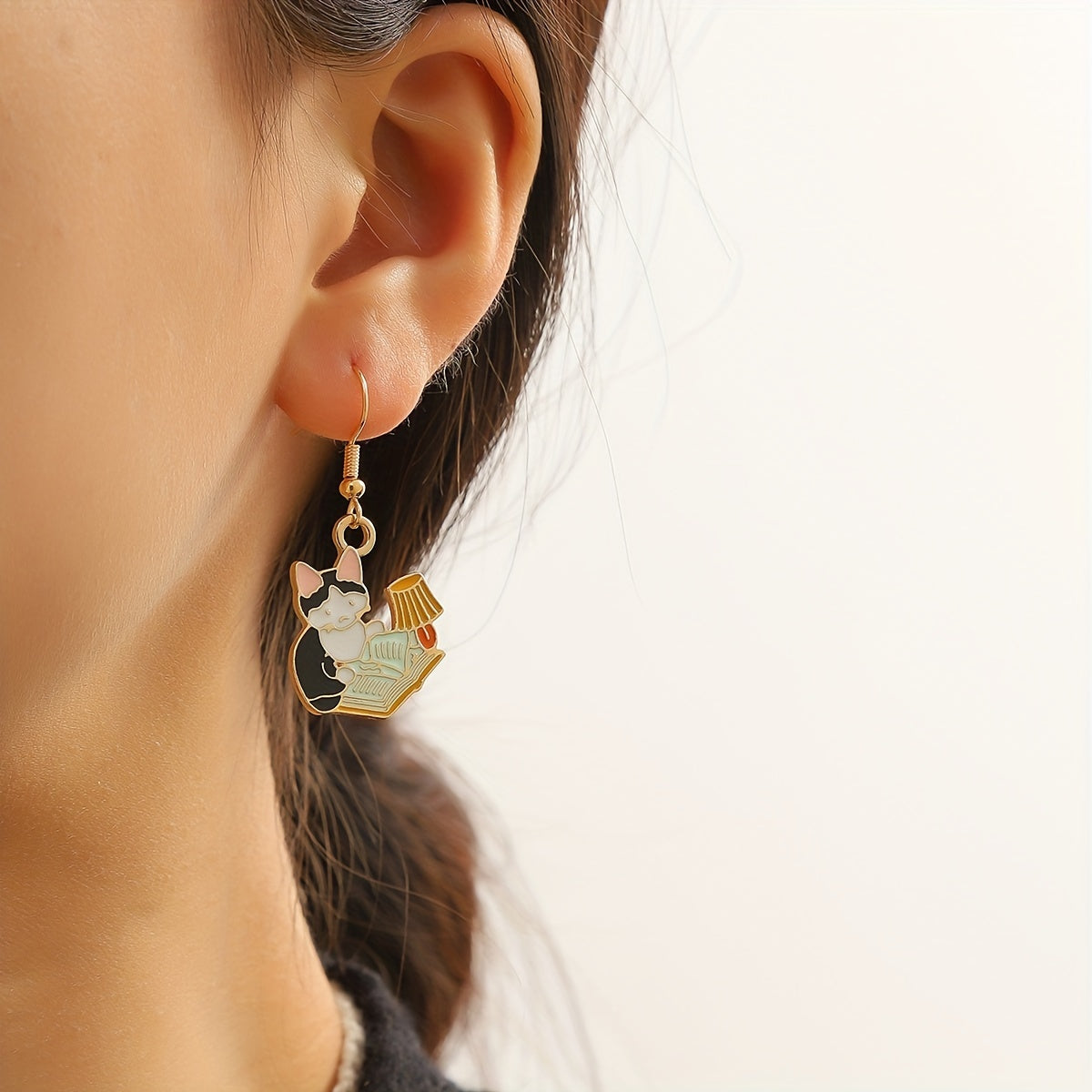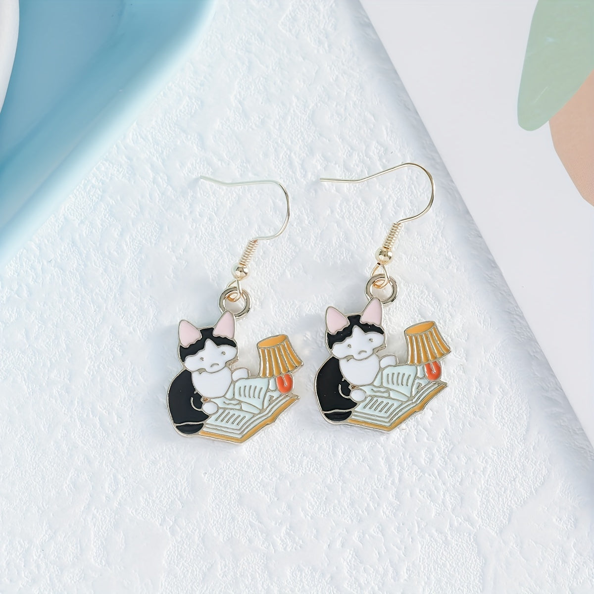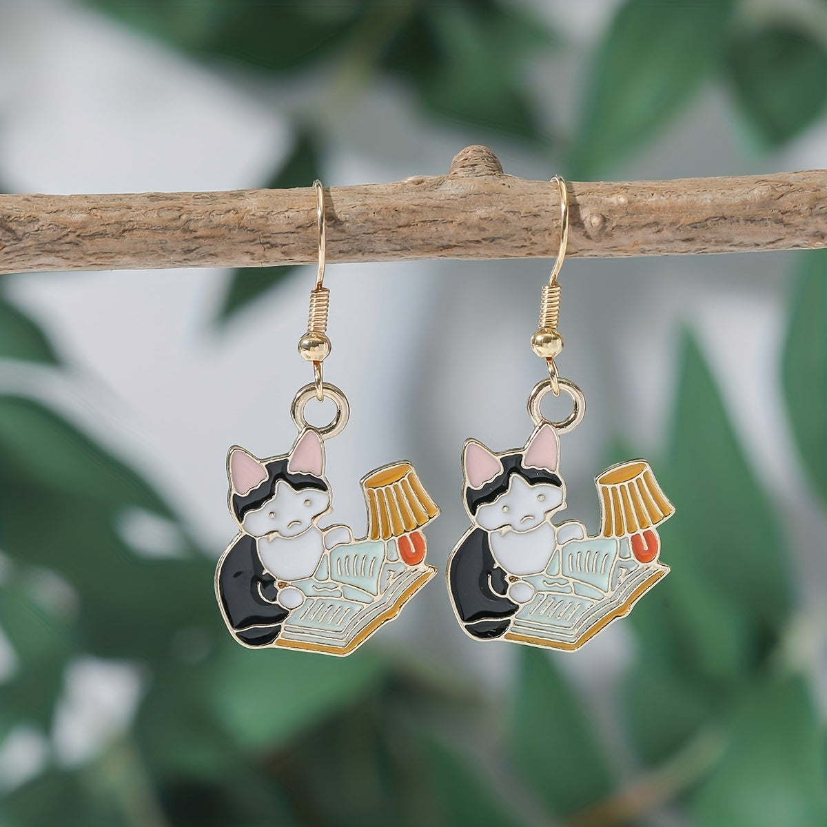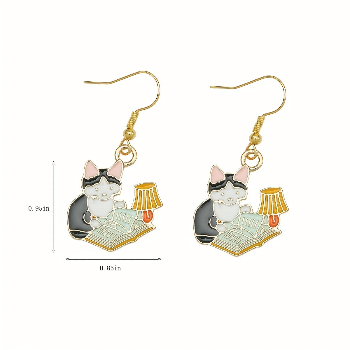 Adorable kitten night reading earrings for women, a charming jewelry decoration to add some fun to your outfit.