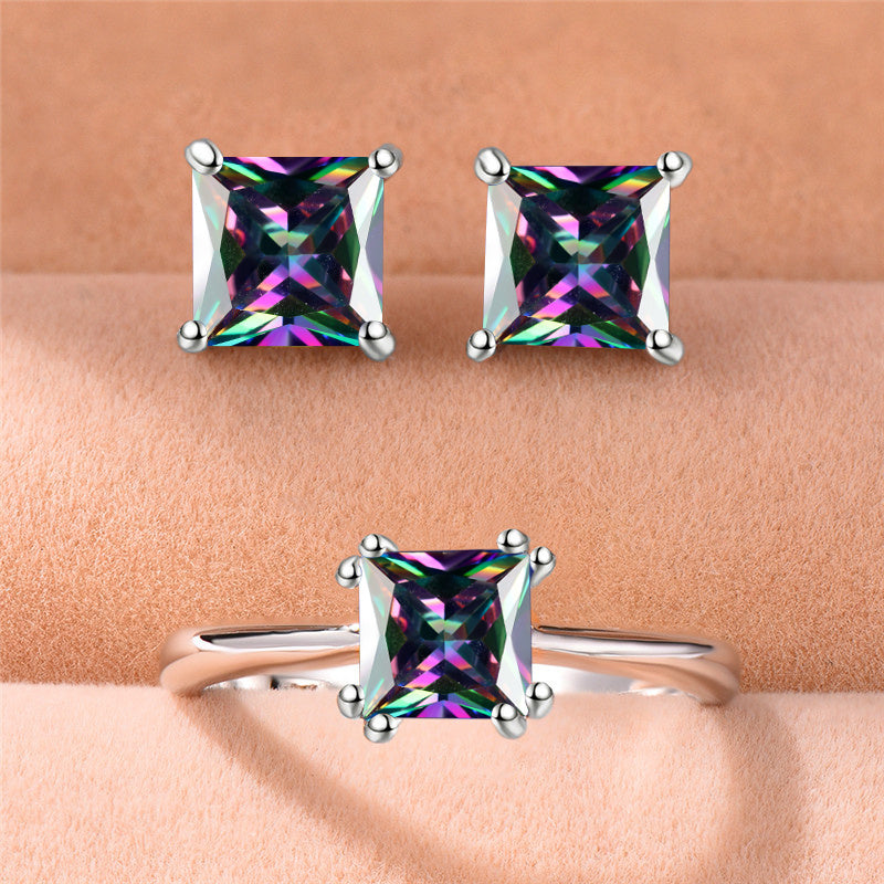 Get this elegant 3pcs set featuring zircon inlaid earrings and ring, perfect for evening wear.