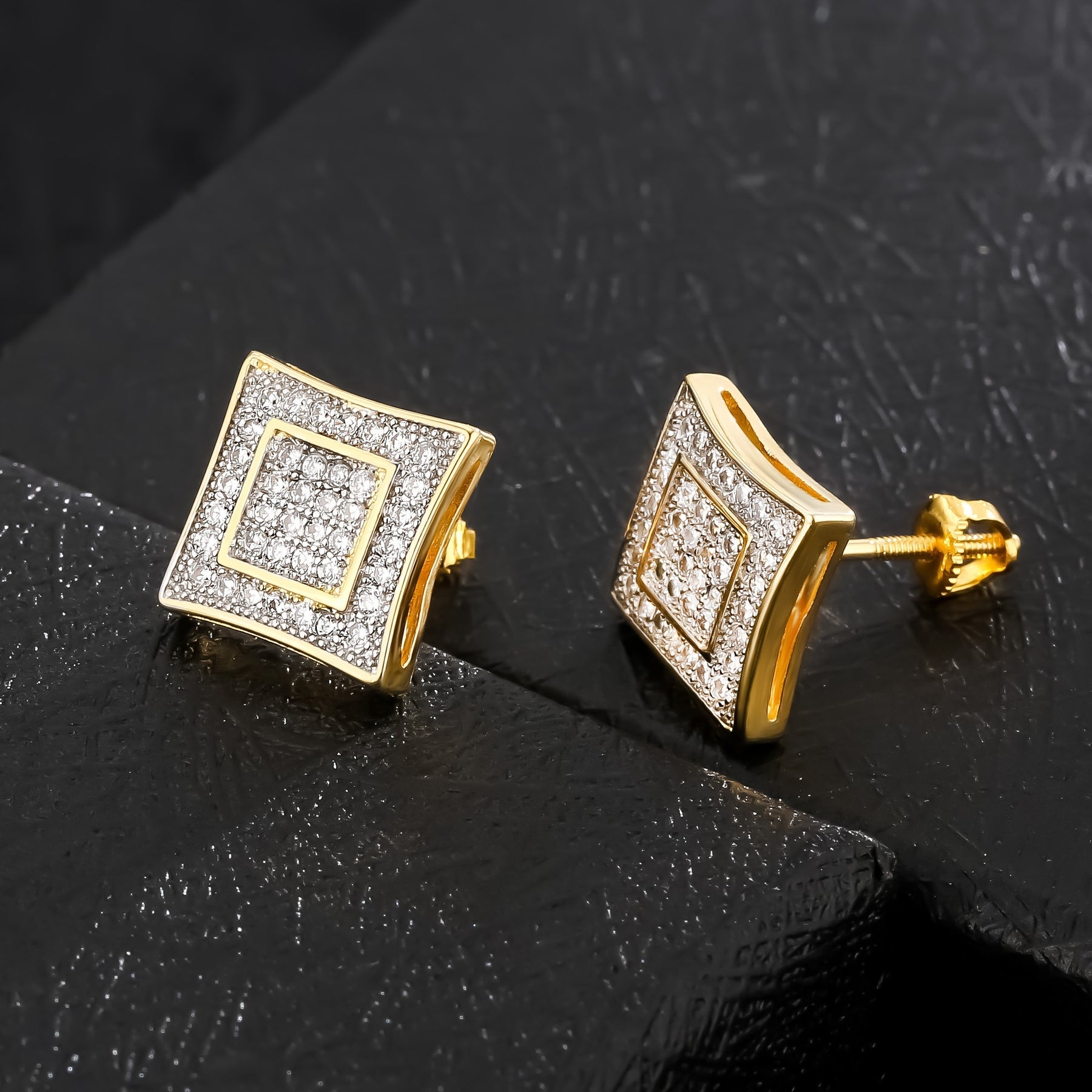 Stylish and high-quality stud earrings with lab-created diamonds for a hip hop look.