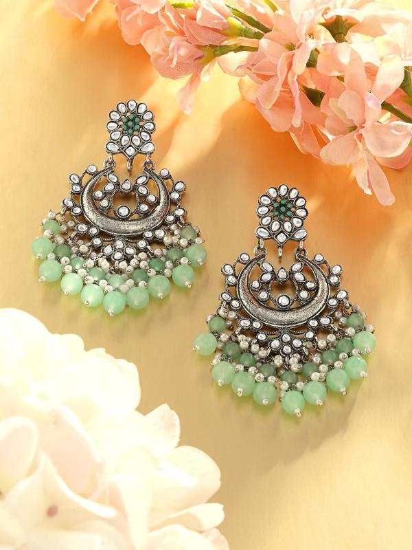 Elevate your style with these stunning Kundan Ethnic Dangle Earrings. Perfect for a touch of traditional elegance.