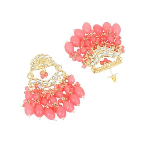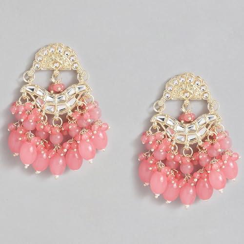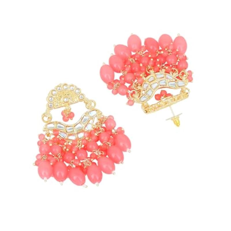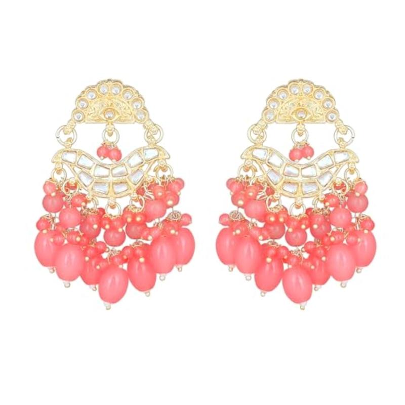 Elegant drop earrings featuring plated kundan studs and beaded pearls. Perfect for special occasions or everyday wear.