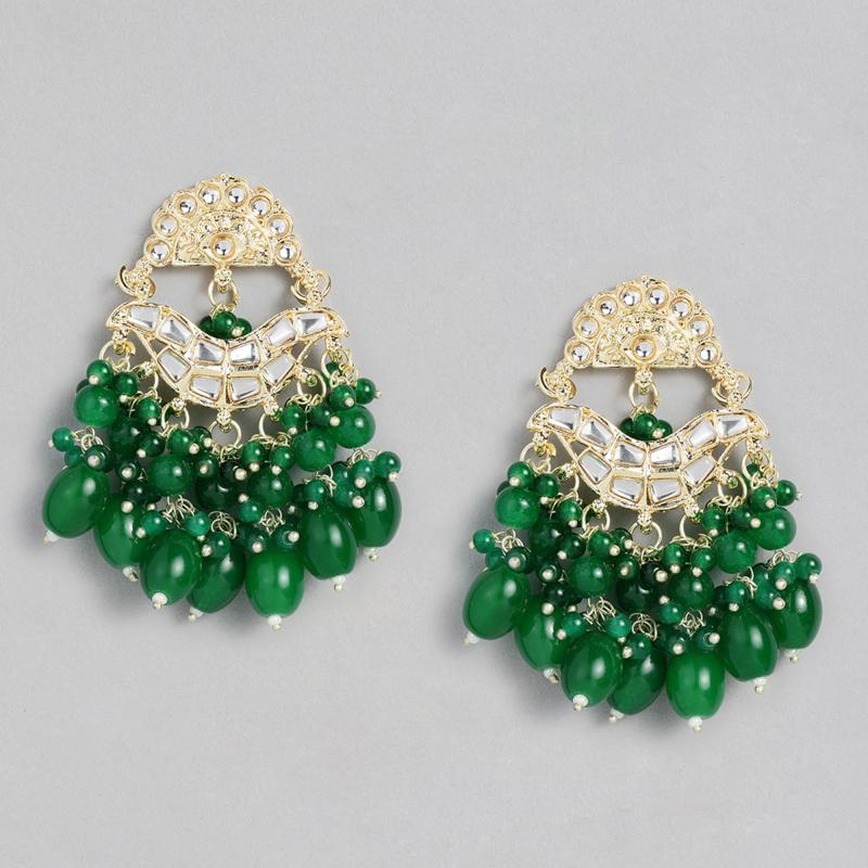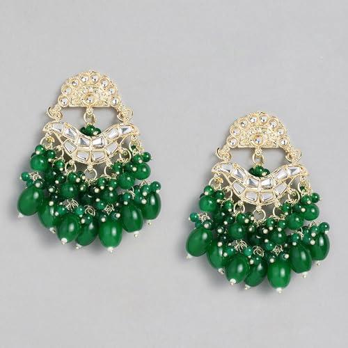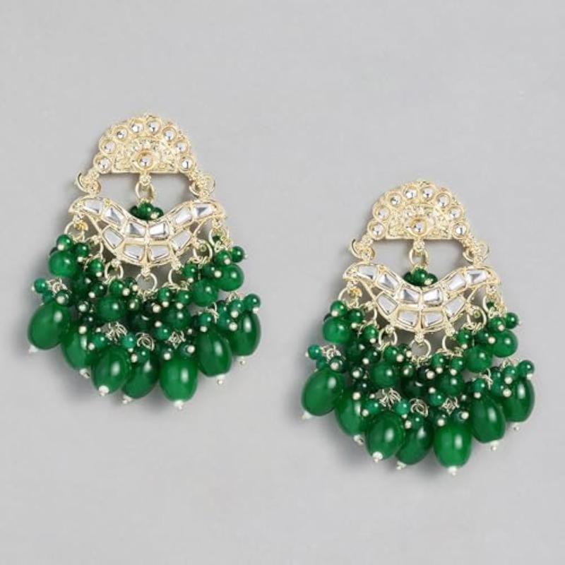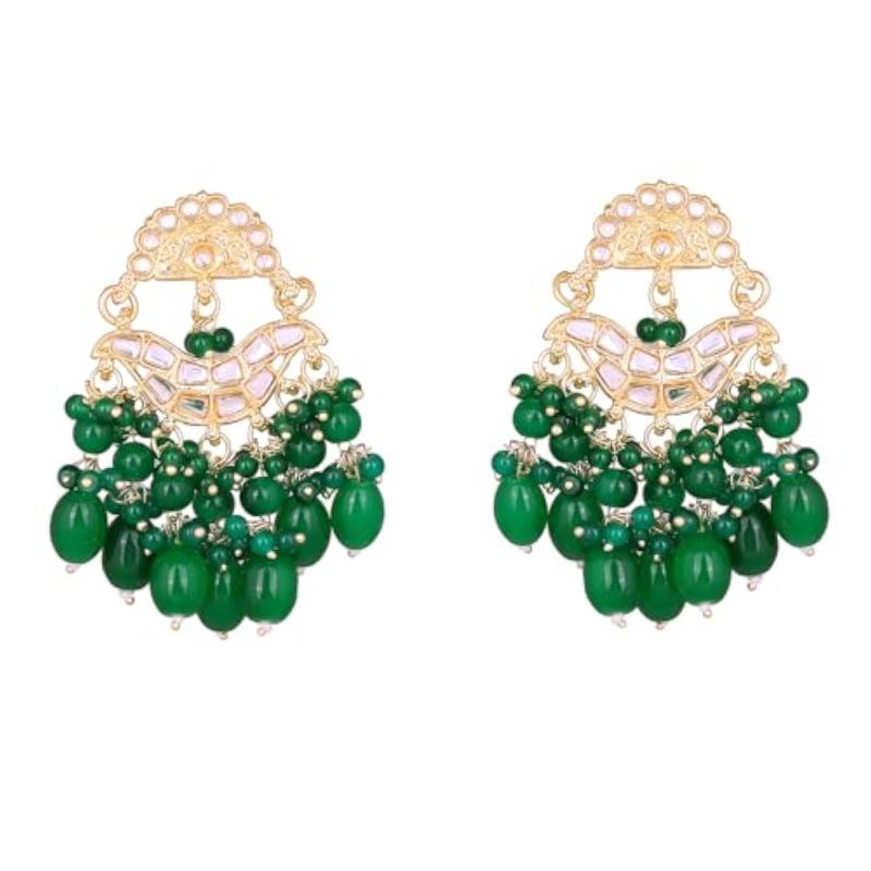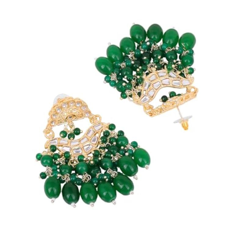Elegant drop earrings featuring plated kundan studs and beaded pearls.
