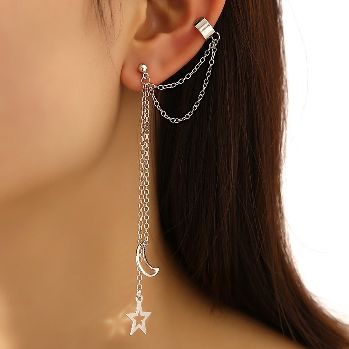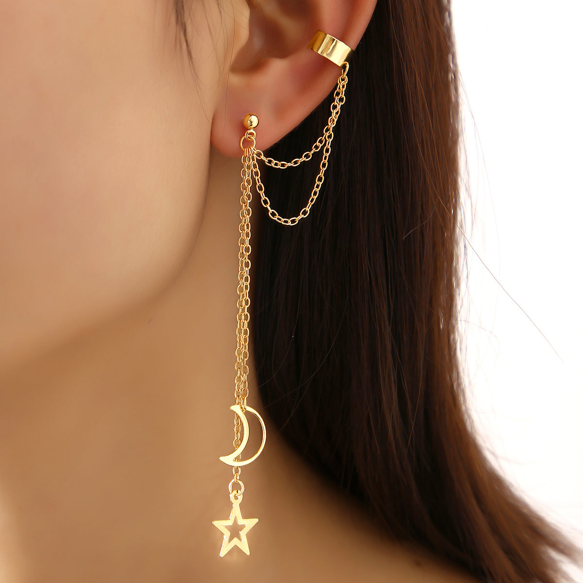 Add celestial charm to your look with this single ear clip featuring a star and moon design.