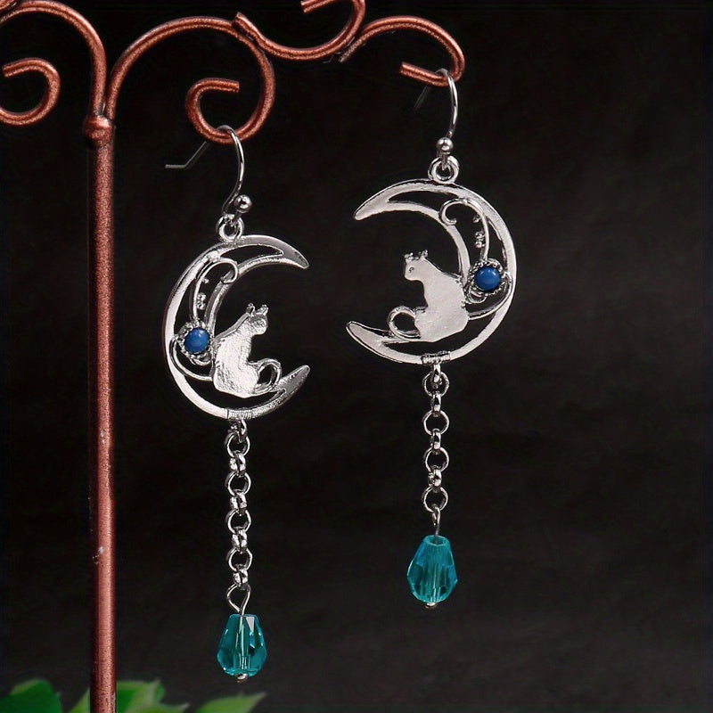 Enhance your look with these stunning lapis lazuli drop earrings featuring antique metal crescent design. Perfect for women who love unique accessories.