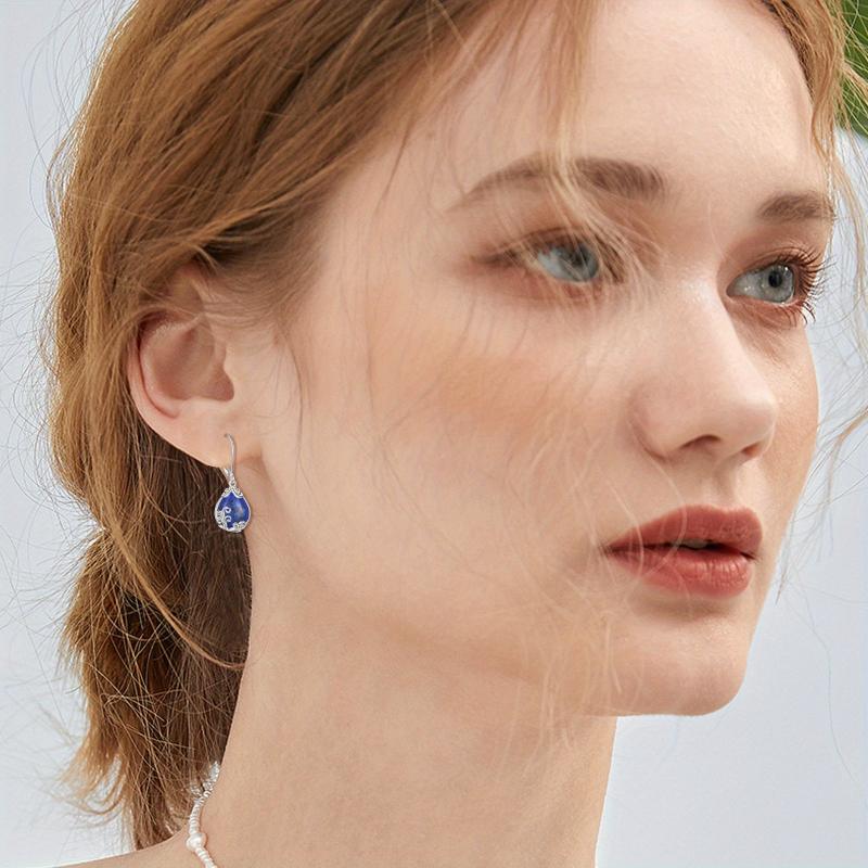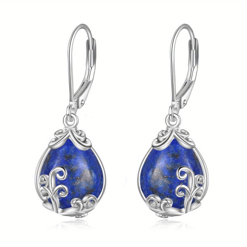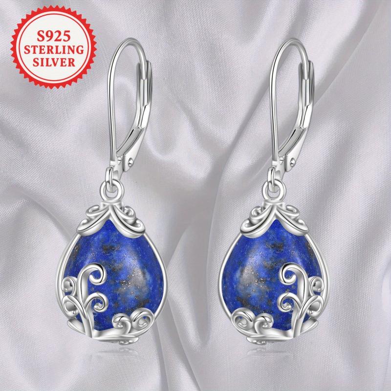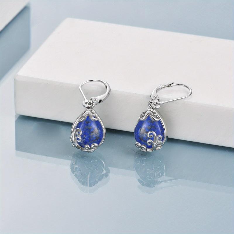 Enhance your look with these elegant Lapis Lazuli teardrop dangle earrings. Crafted with sterling silver and synthetic stones, these earrings are a stylish addition to any outfit.