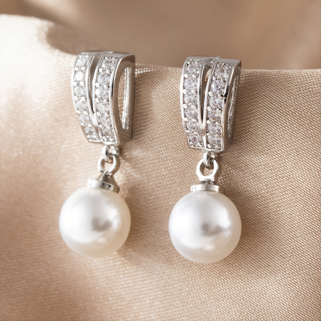 Elegant and stylish large pearl earrings featuring zircon drops, perfect for adding a touch of sophistication to any outfit.