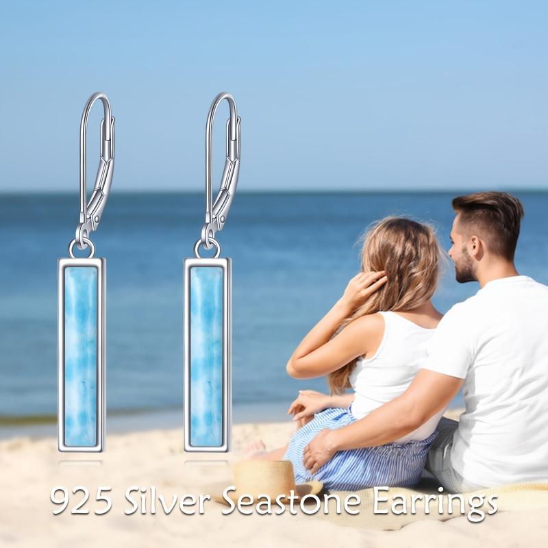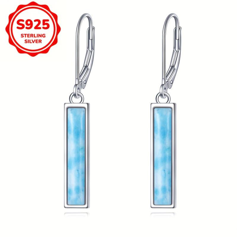Elegant larimar earrings crafted in sterling silver, perfect gift for women. These leverback earrings are stylish and versatile, adding a touch of sophistication to any outfit.