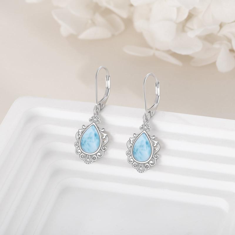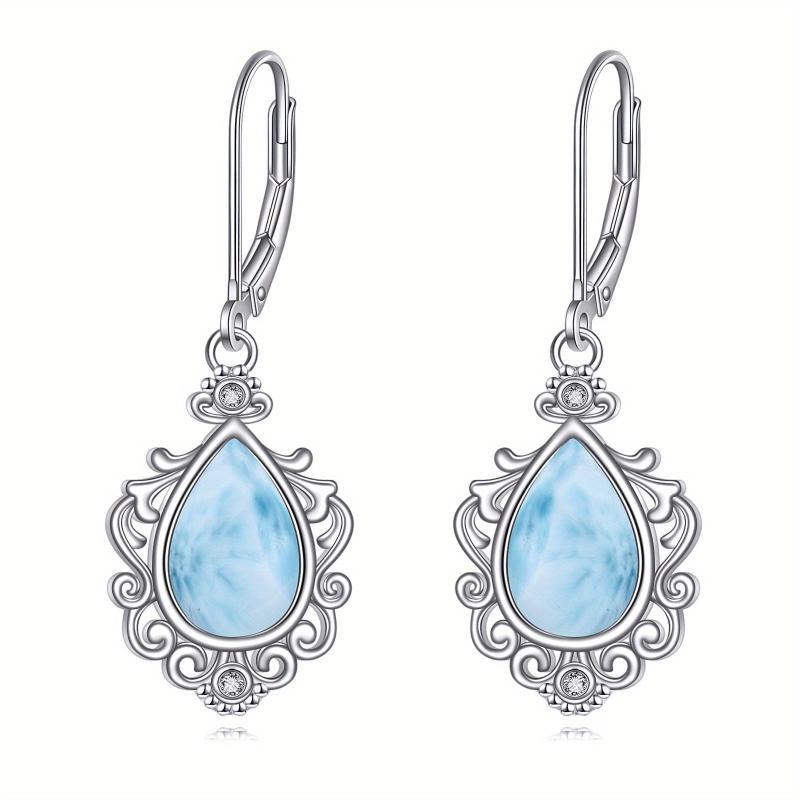 Stunning larimar earrings crafted in vintage sterling silver with gemstones, perfect for bohemian style jewelry lovers.
