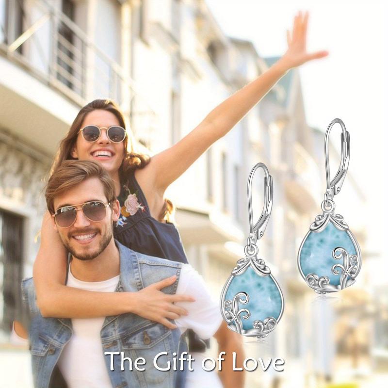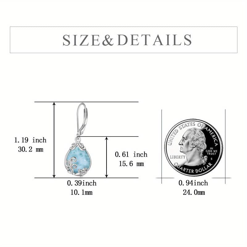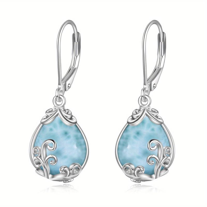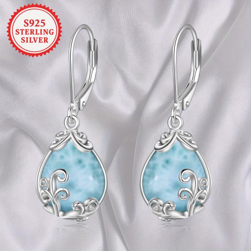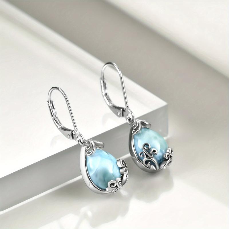 Add elegance to your look with these stunning Larimar teardrop earrings. Made of high-quality sterling silver, these dangle earrings feature intricate filigree designs that add a touch of sophistication to any outfit.