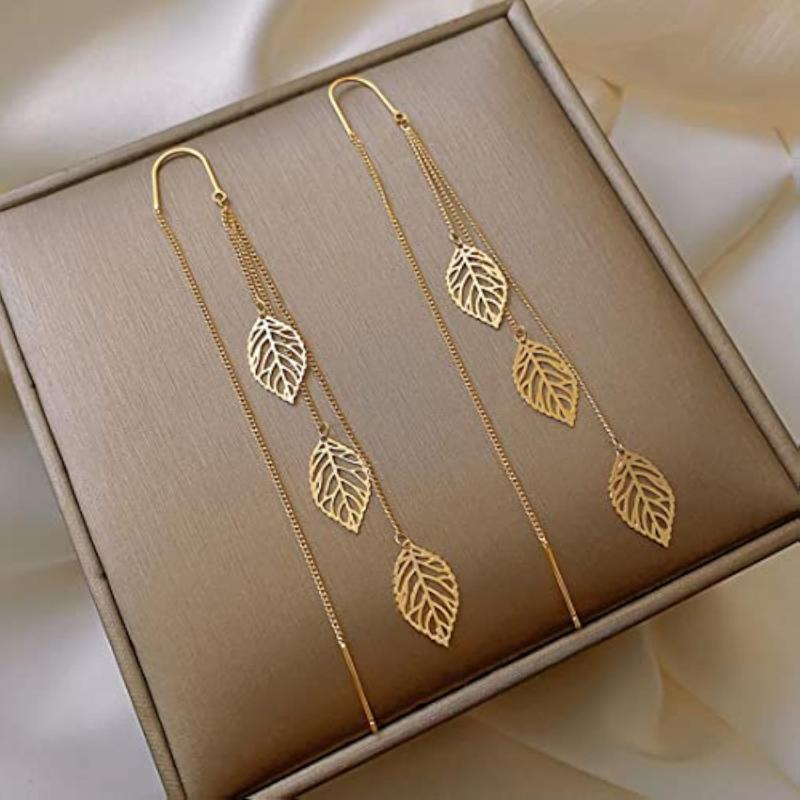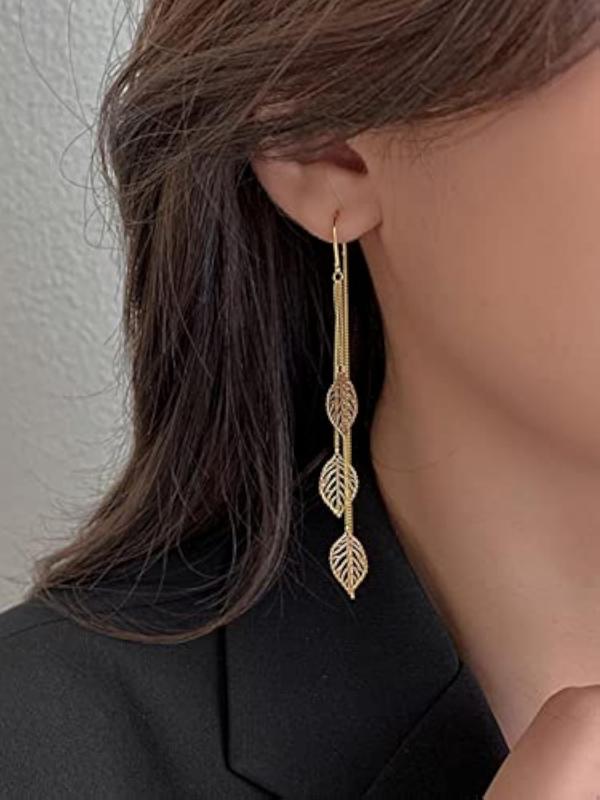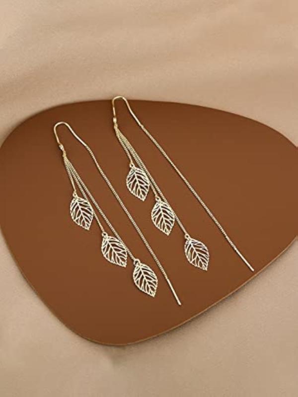 These elegant leaf dangle earrings are perfect for any occasion. The unique design adds a touch of nature-inspired beauty to your look.