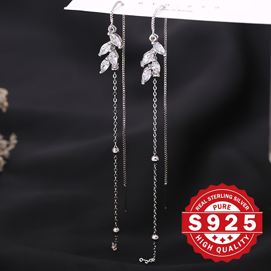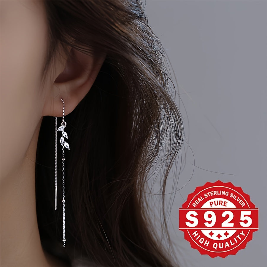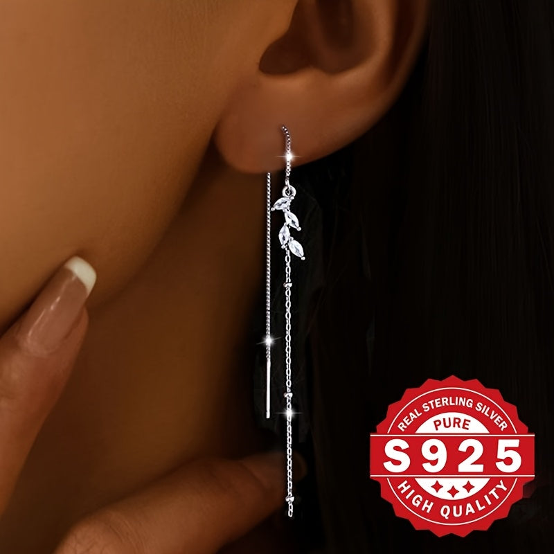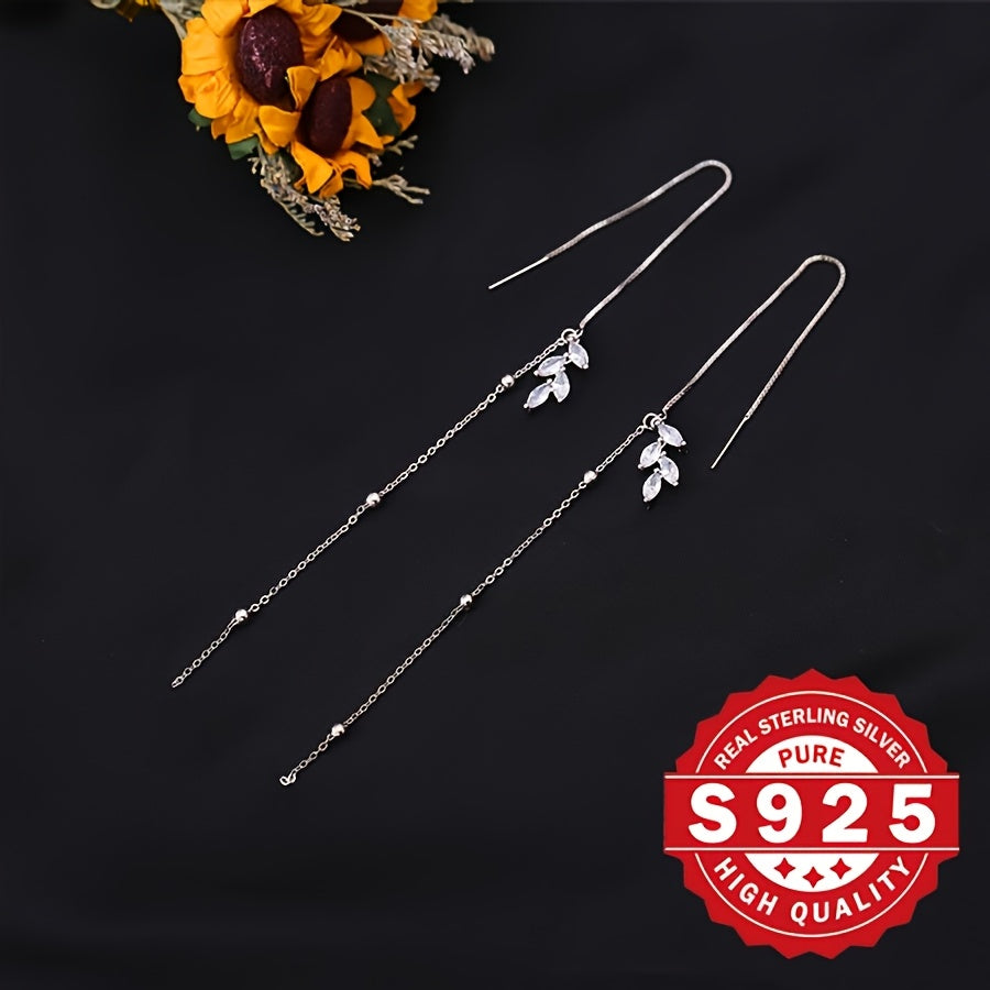 These stunning leaf earrings are crafted from 925 sterling silver with an 18K golden plated finish. Adorned with synthetic zirconia, they are lightweight and perfect for everyday wear.
