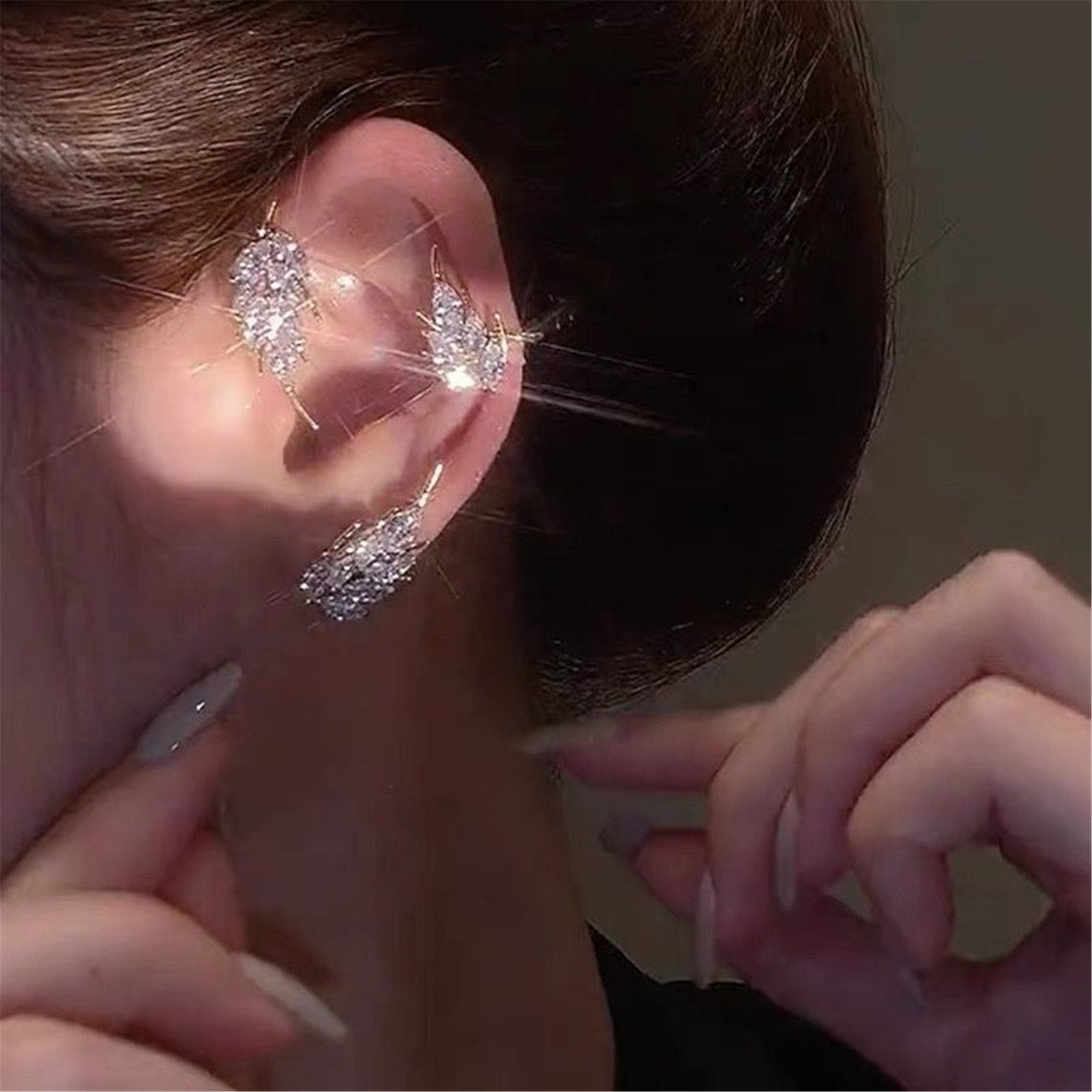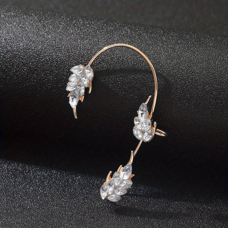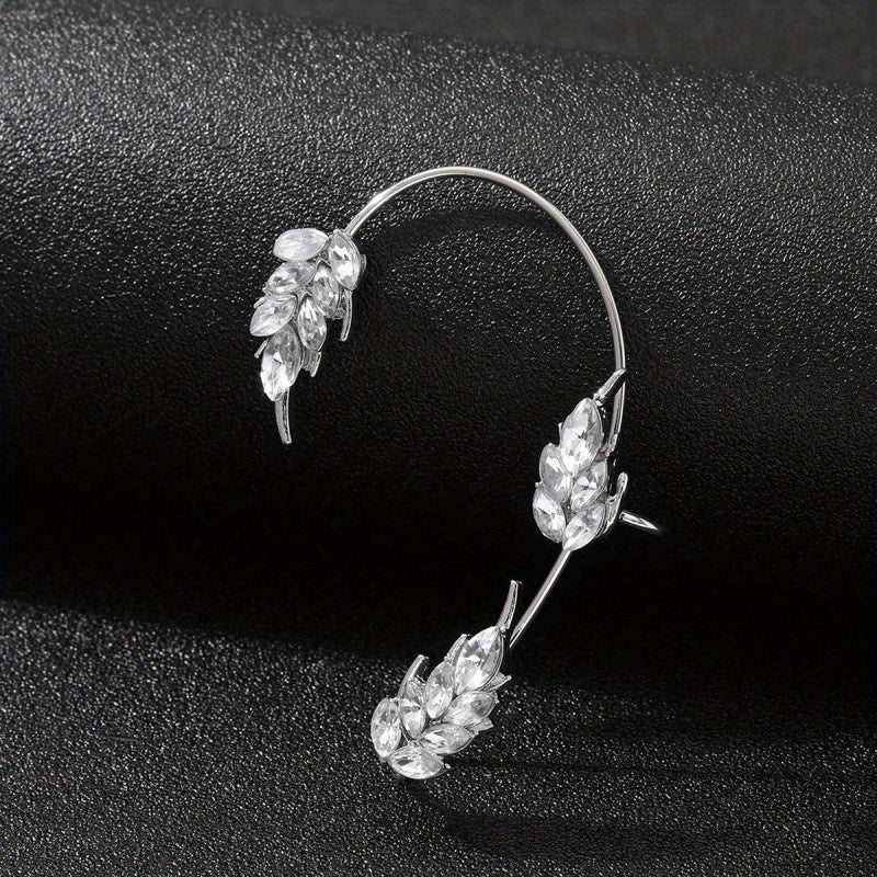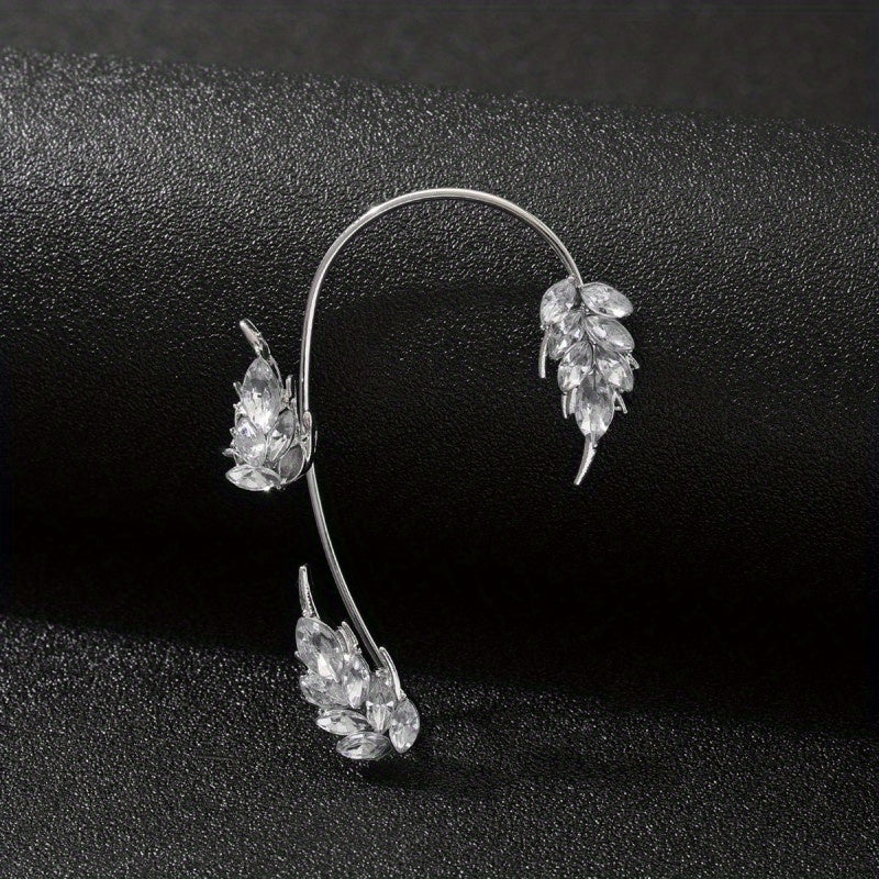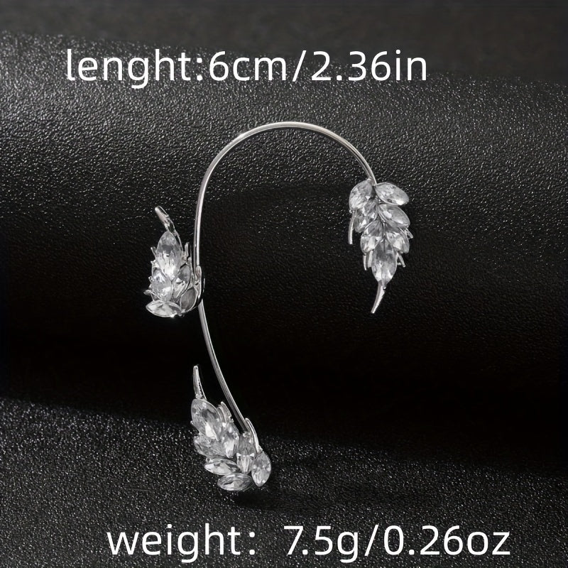 Elegant and high-end ear clip earrings featuring a leaf feather design with sparkling zirconium accents. No piercing required.