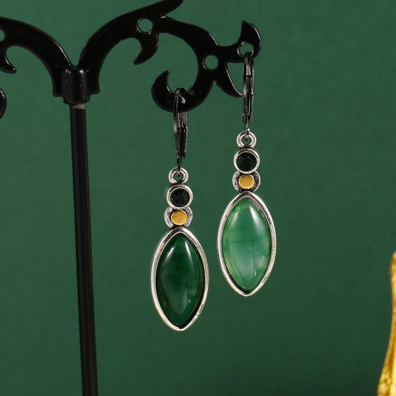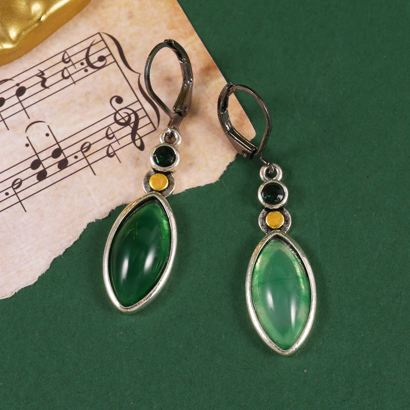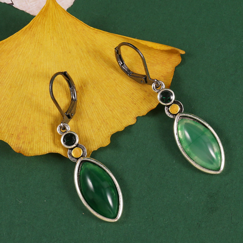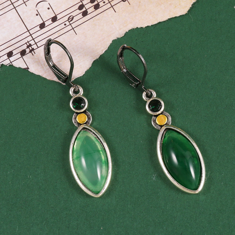 Add a touch of elegance to your look with these leaf shape drop earrings featuring smooth synthetic gems. Perfect for adding a touch of glamour to any outfit.