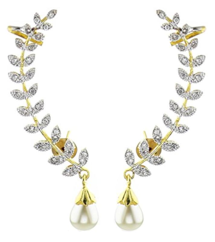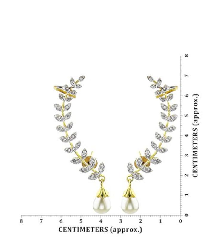 Add a touch of elegance to your look with these stunning leaf-shaped ear cuffs earrings. The earrings are beautifully plated with American diamond for a glamorous finish.