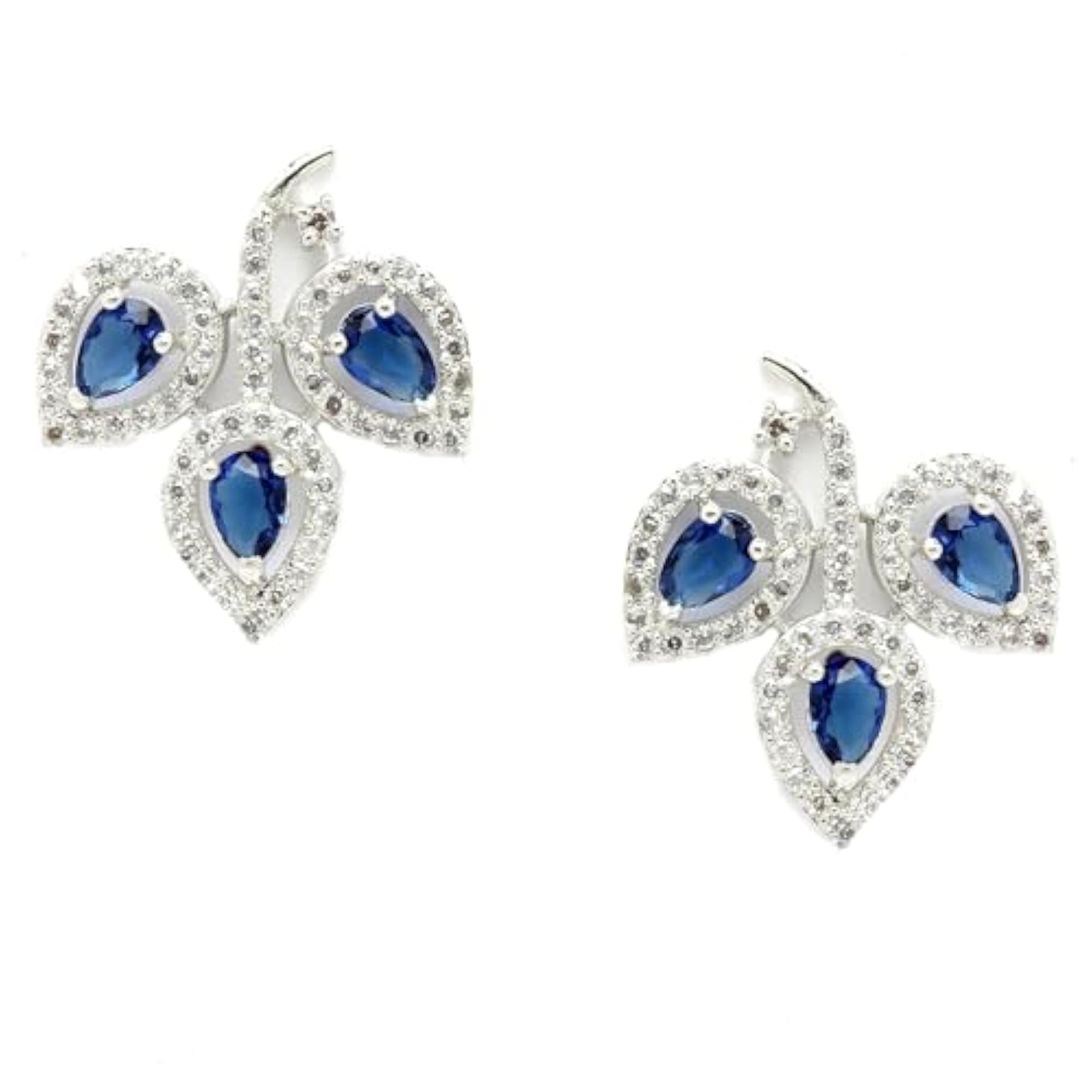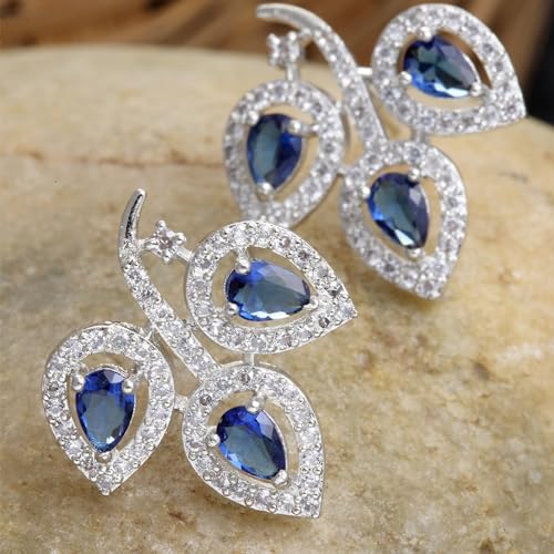 Enhance your look with these stunning blue American diamond stud earrings that are designed in a leaf shape.
