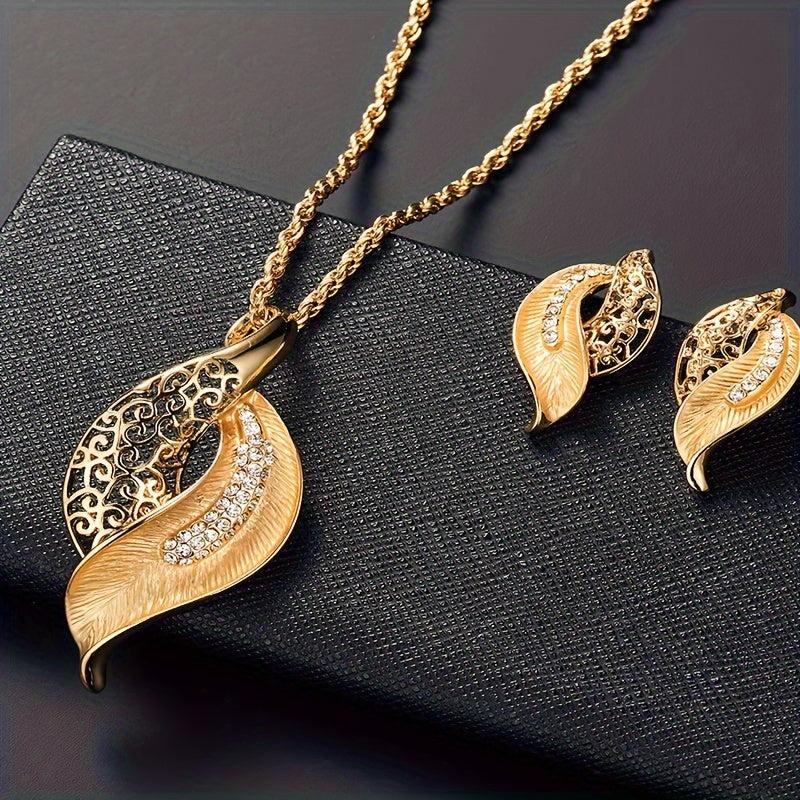 This unique jewelry set features a hollow out leaf design with sparkling mosaic rhinestones, perfect for adding a touch of vintage glamour to any outfit. Crafted from high-quality zinc alloy, this set is an ideal gift for men and sophisticated women alike.