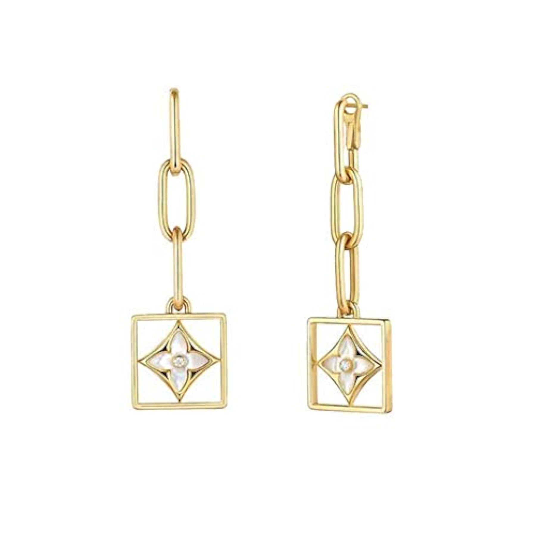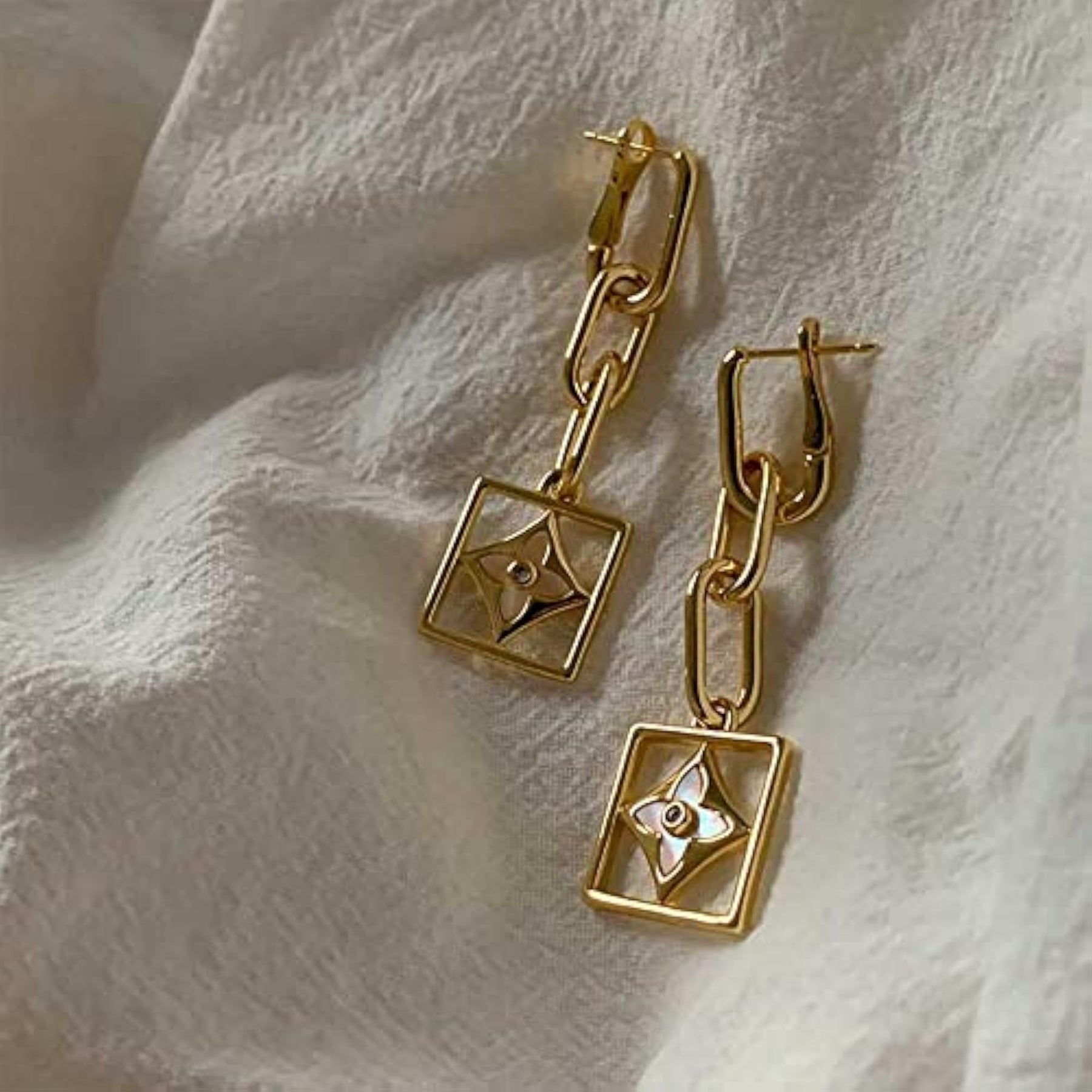 These elegant earrings feature a link chain with a flower drop design, creating a trendy and stunning look. The latch back closure ensures a secure fit.