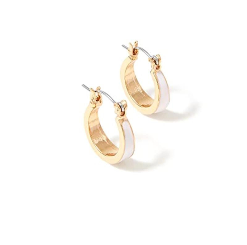 Add a pop of color to your outfit with these pastel enamel inlay hoop earrings from London Dfg.