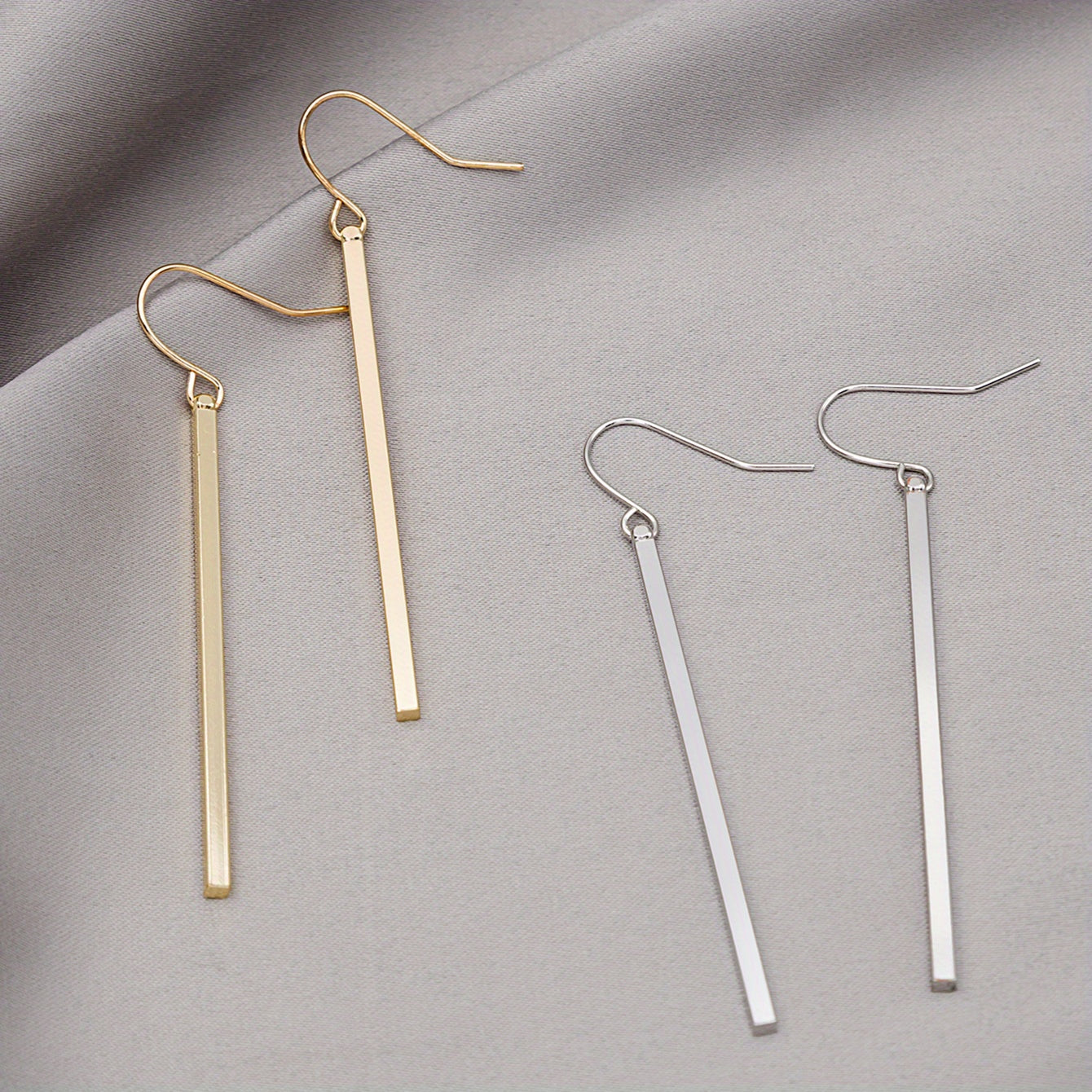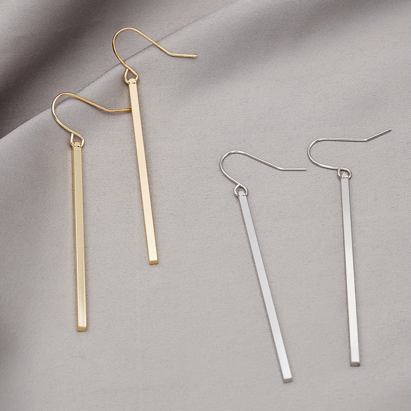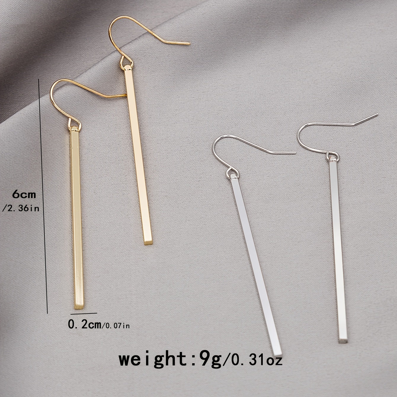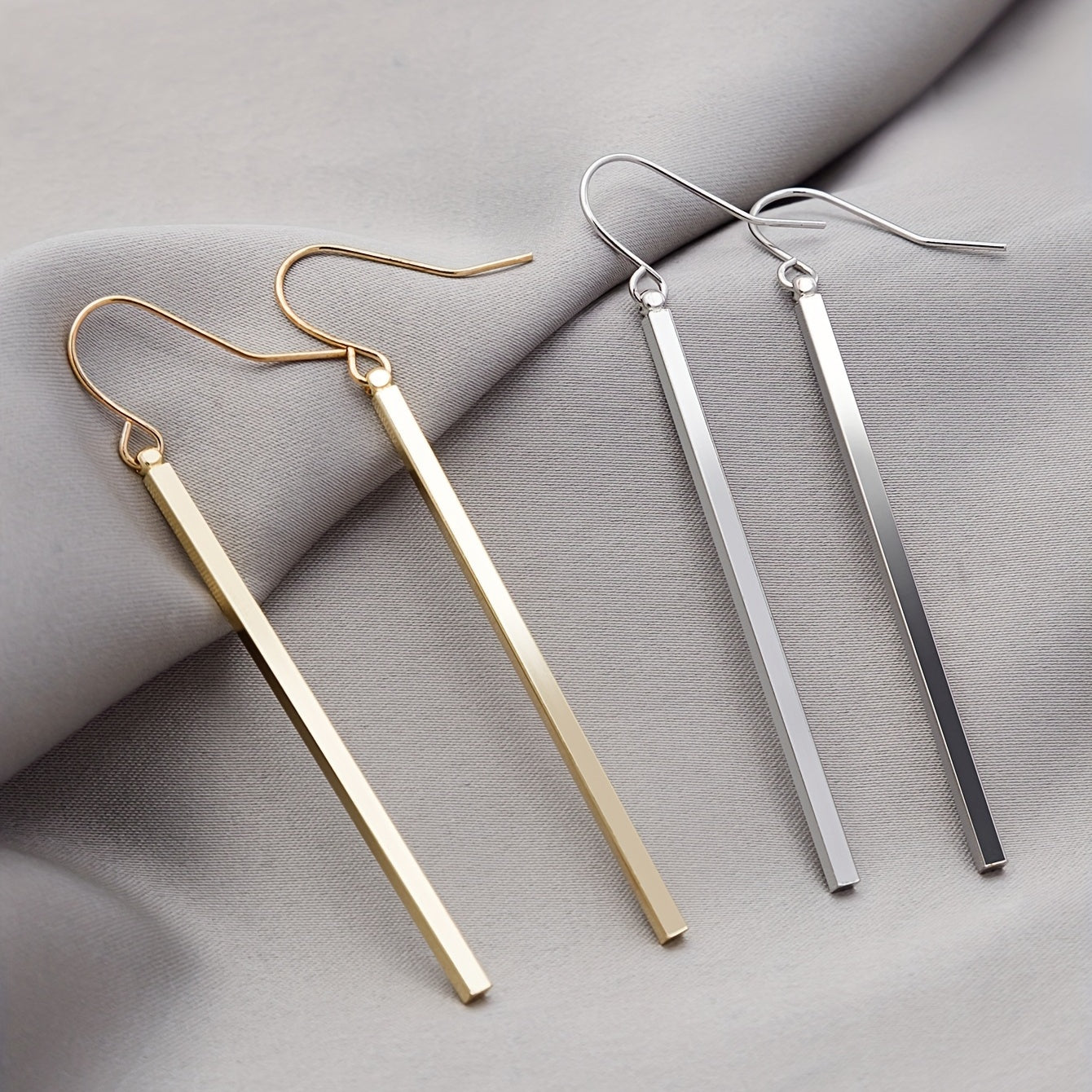 These stylish dangle earrings feature a retro design with a long cuboid pendant. Made from silver-plated alloy, they add a touch of elegance to any outfit. Perfect for gifting to a female friend or loved one.