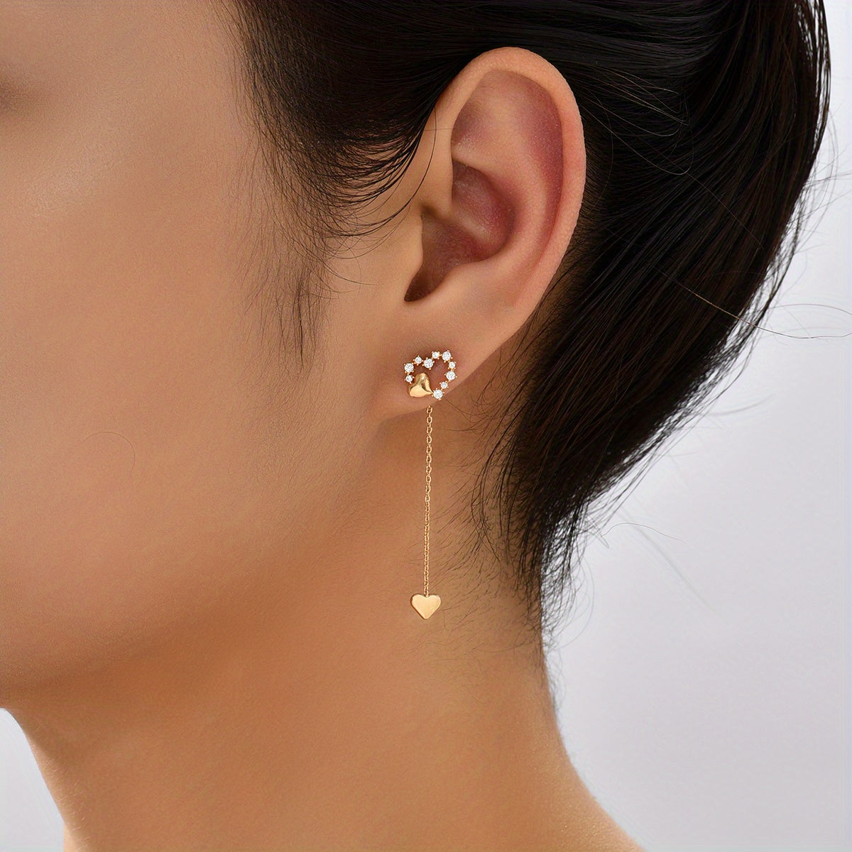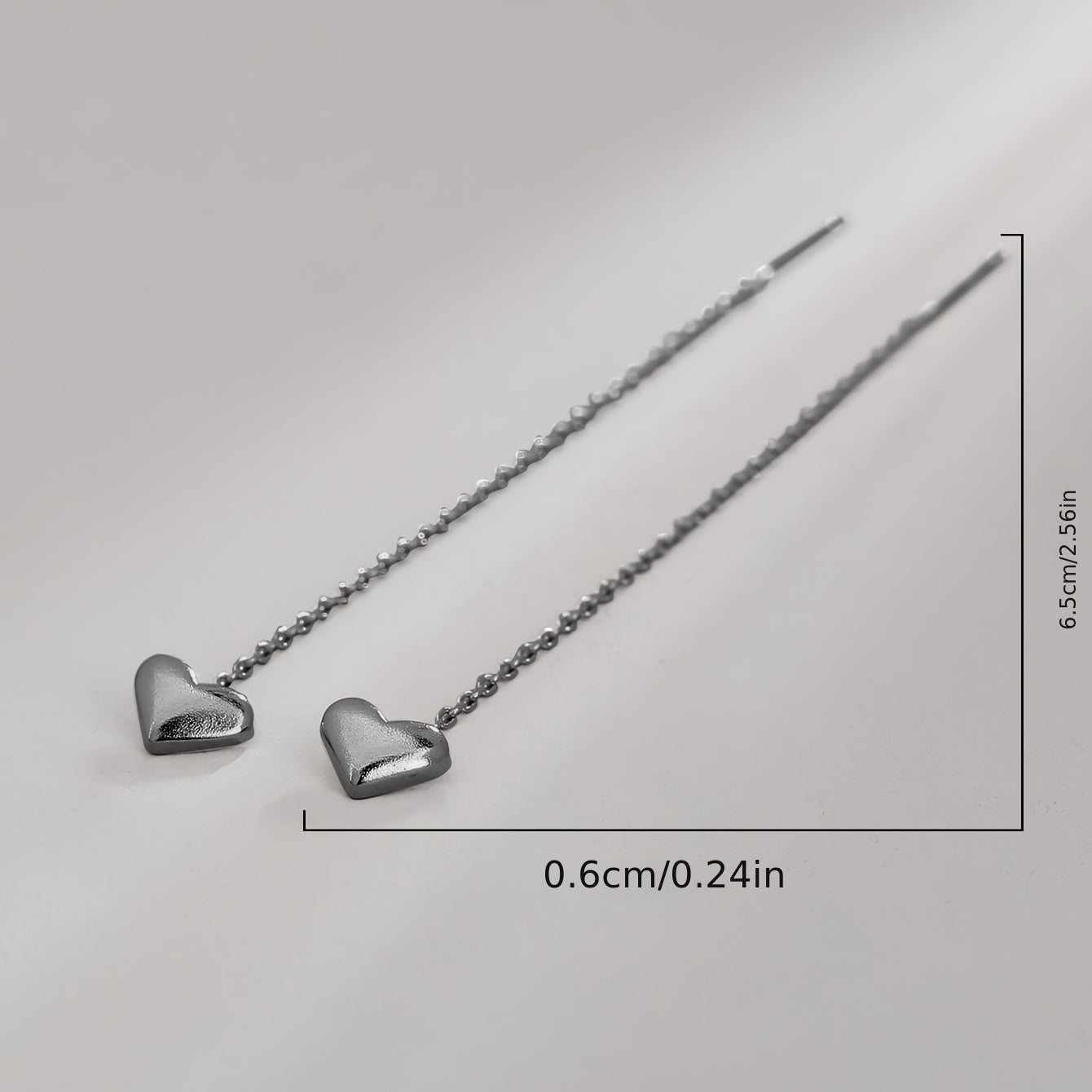 Add a touch of elegance with these long earrings featuring heart pendants. Perfect for any outfit and occasion.