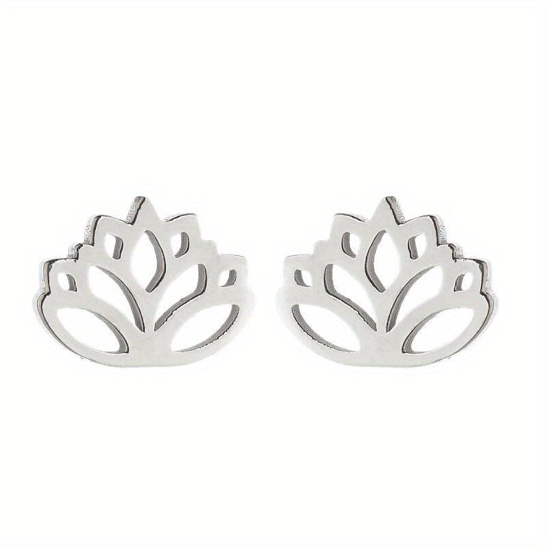These stainless steel earrings feature a retro and creative design with a hollowed out lotus pattern, adding a touch of sweetness to your look. Perfect for everyday wear or special occasions.