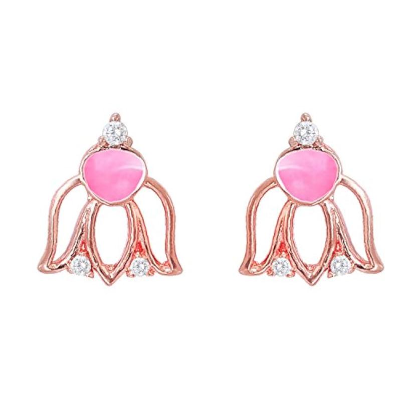 Add an elegant touch to your look with these stunning lotus flower stud earrings. Made with rose-plated metal and sparkling CZ stones, these earrings are perfect for any occasion.