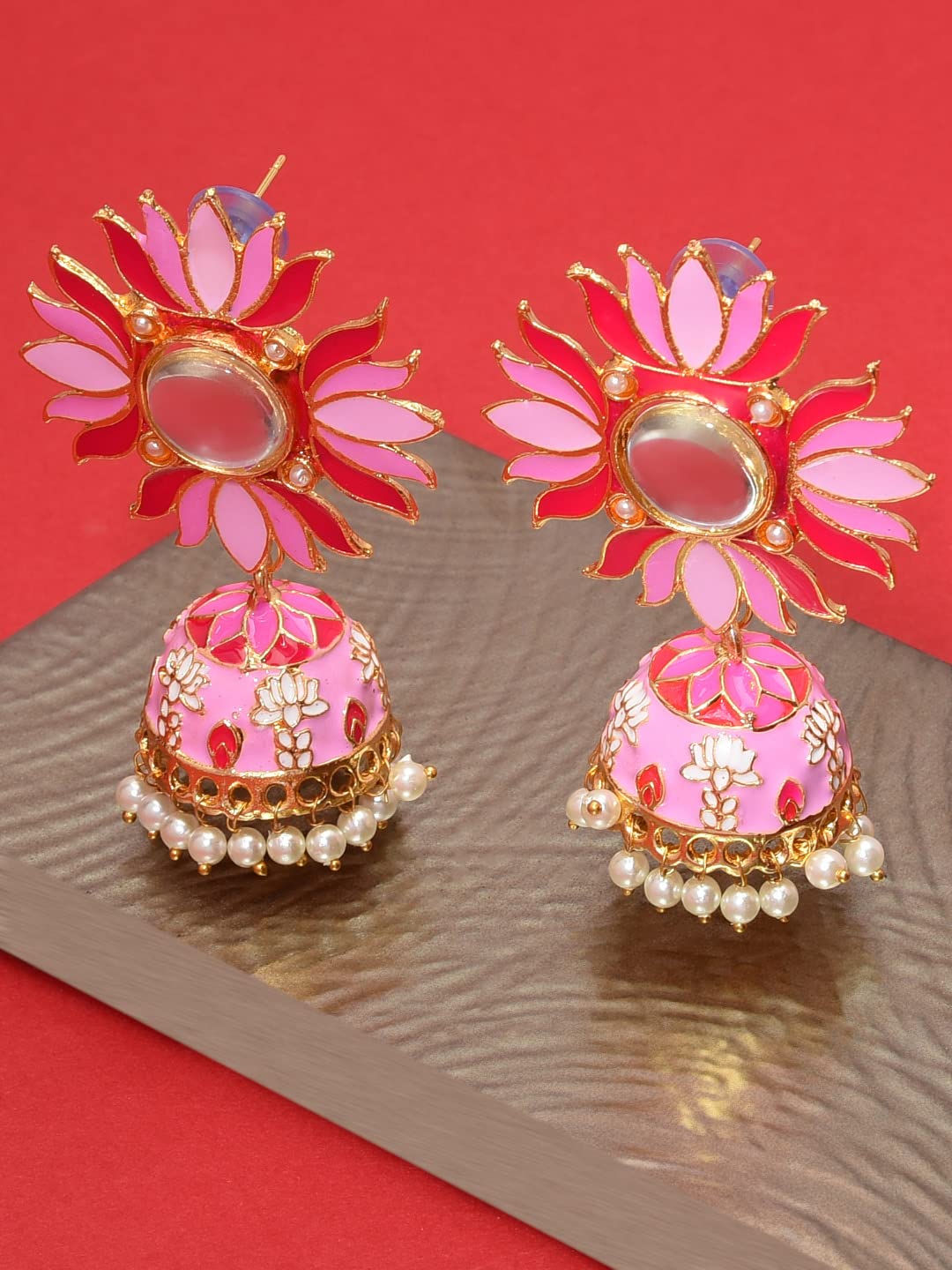 Beautifully designed Lotus Meenakari Traditional Jhumki Earring crafted for women with intricate detailing.