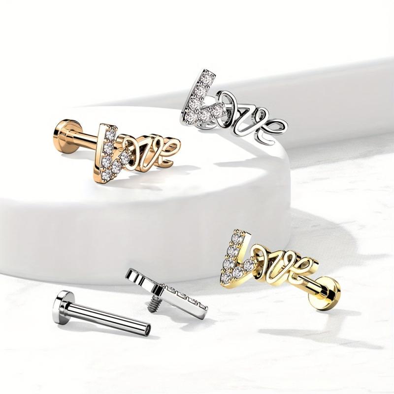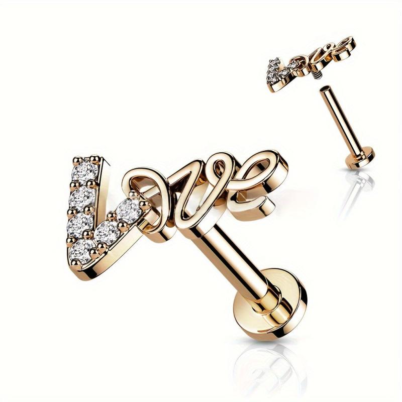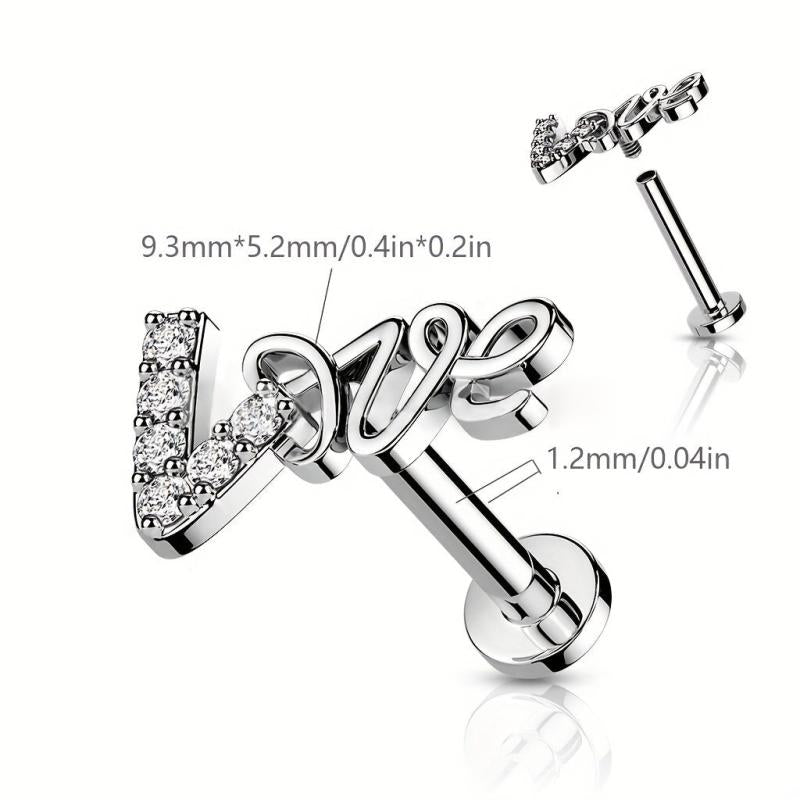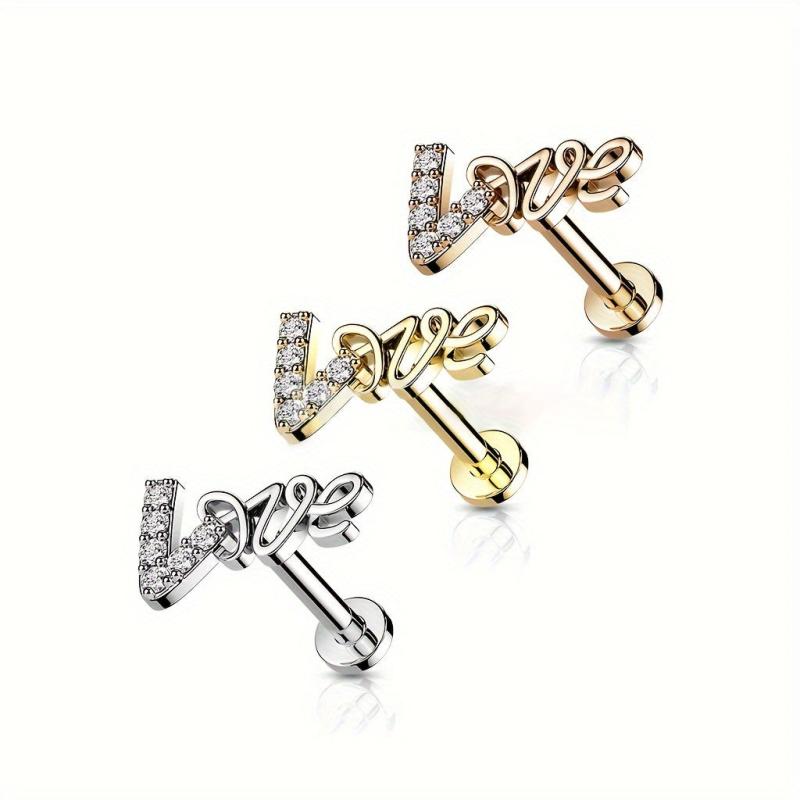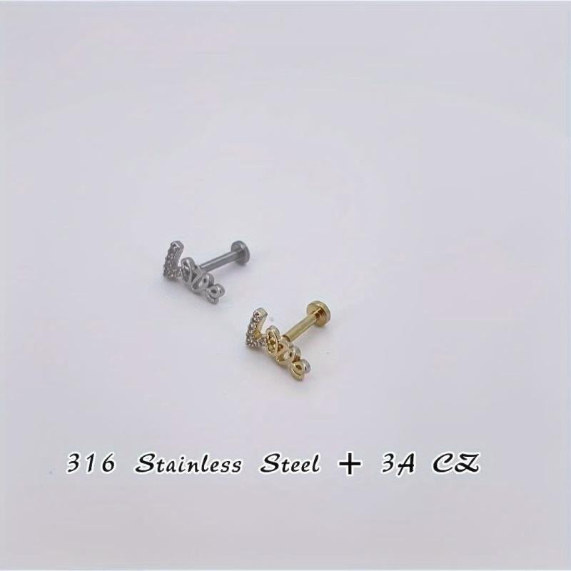 A set of LOVE-themed piercing studs made from durable 316 stainless steel. Suitable for lip, nose, ear bone, and ear spiral piercings. Perfect for adding a touch of style and love to your look.