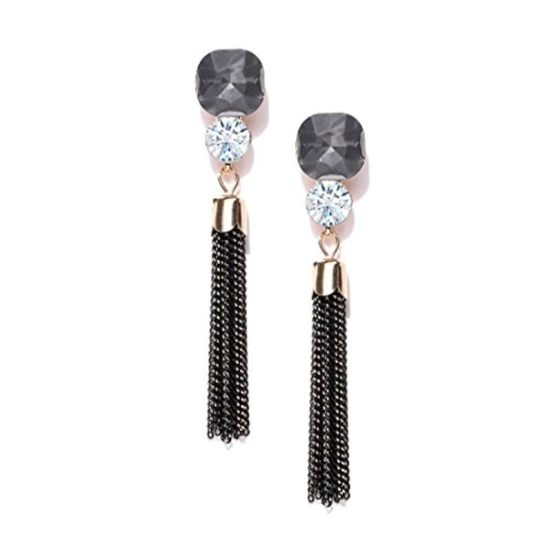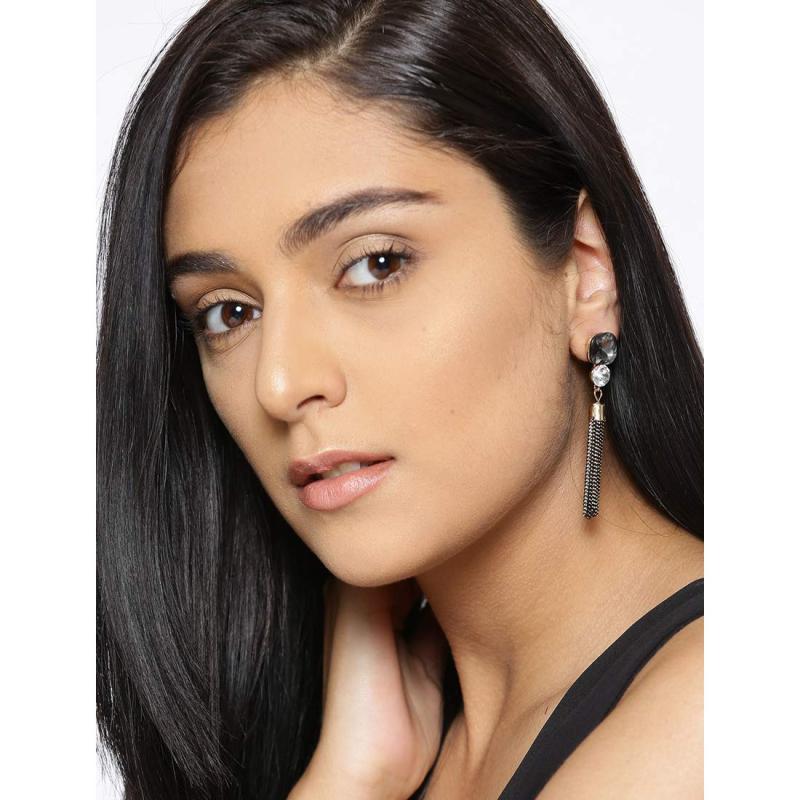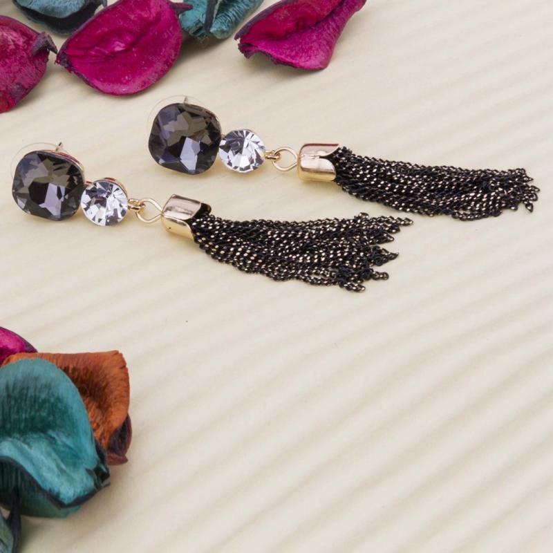 Adorn yourself with these stunning chain drop earrings featuring delicate crystals and American diamonds. Perfect for special occasions.
