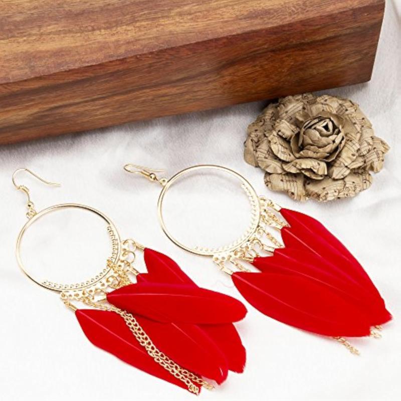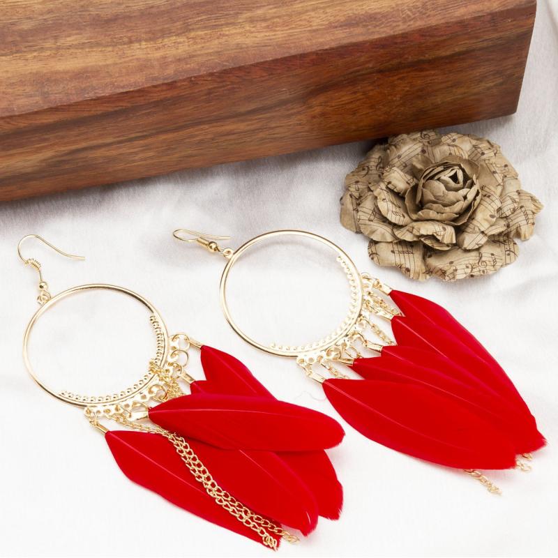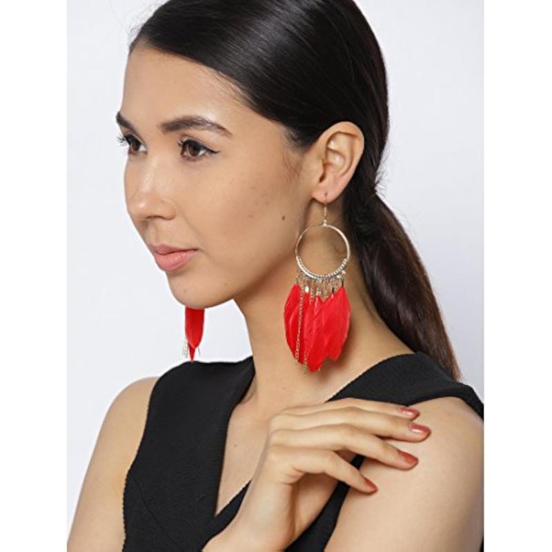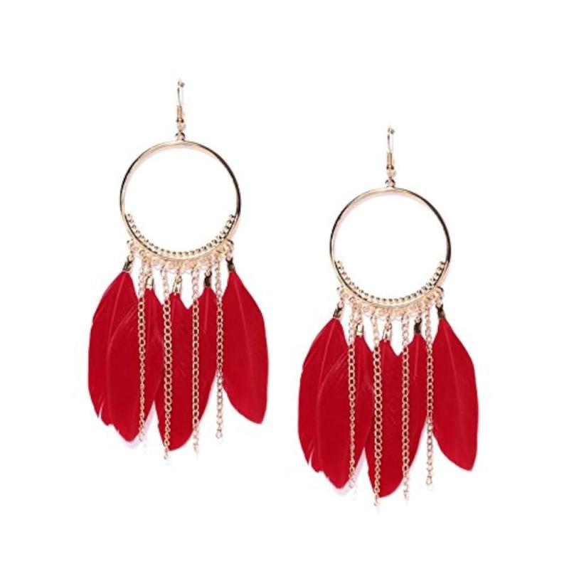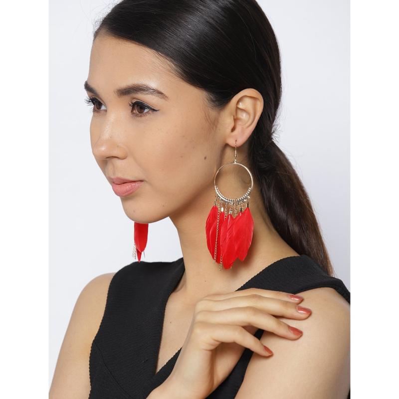 These attractive earrings feature a delicate feather design with chain drop, plated in a luxurious finish.