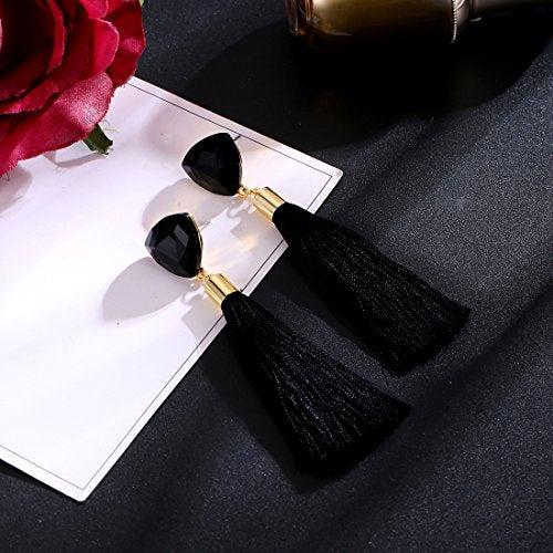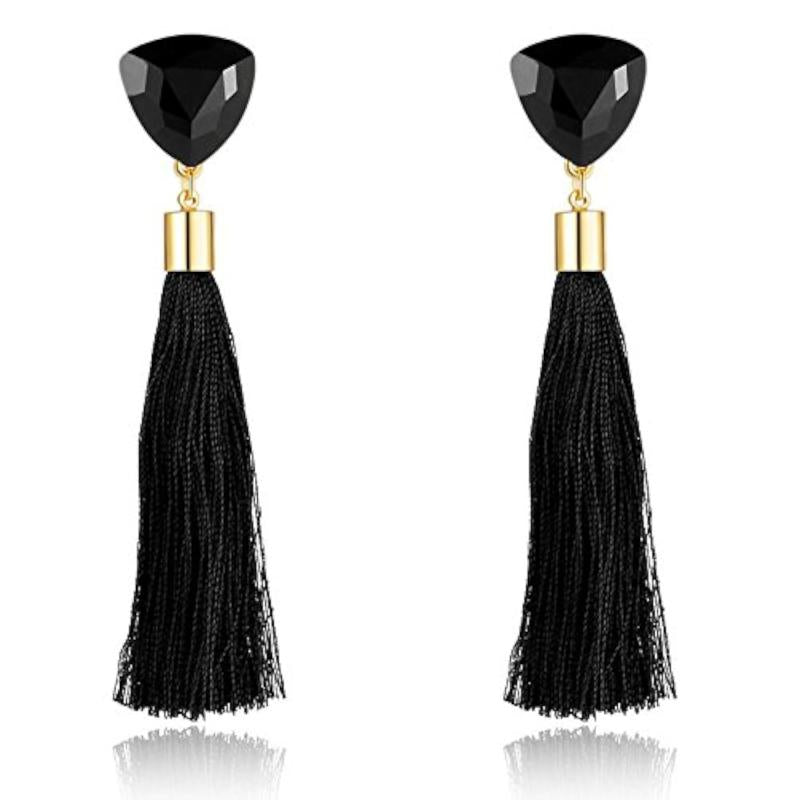 Add a touch of elegance to your look with these Luxuria plated geometrical crystal tassel earrings. Perfect for any occasion, these earrings are sure to make a statement.