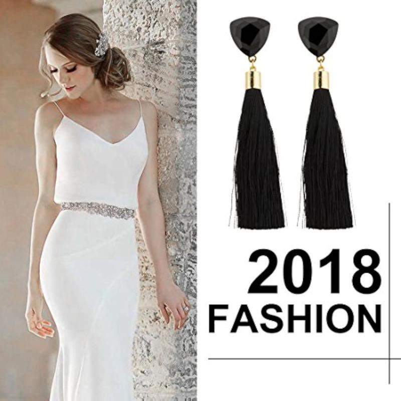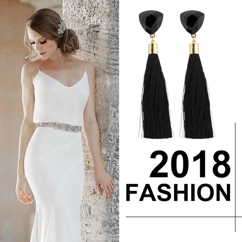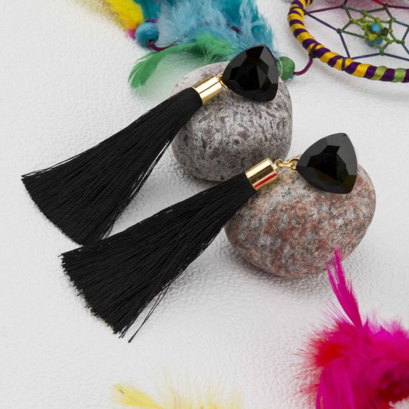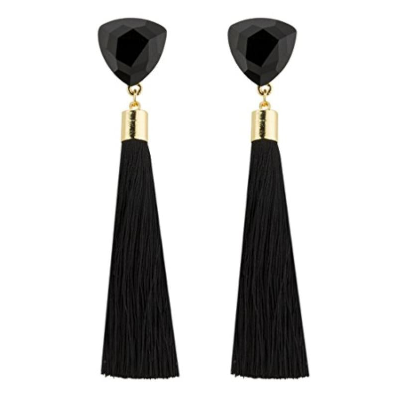 Elegant and eye-catching, these geometrical crystal tassel earrings are a must-have for any stylish woman.