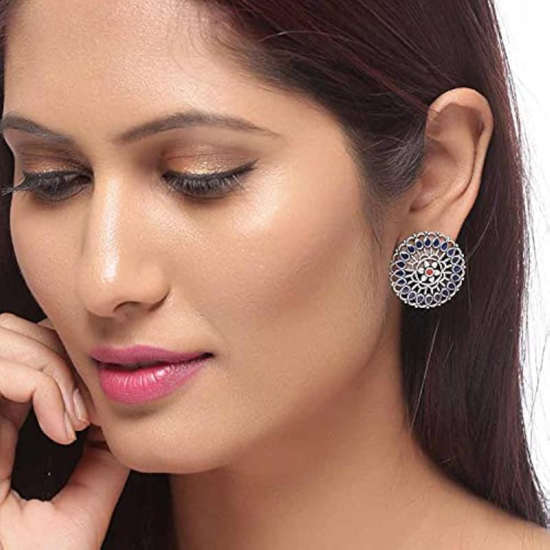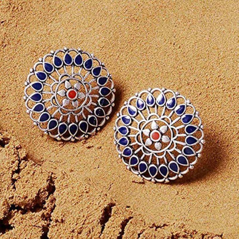 Beautiful earrings with intricate mandala floral motifs, perfect for adding a touch of elegance to any outfit.