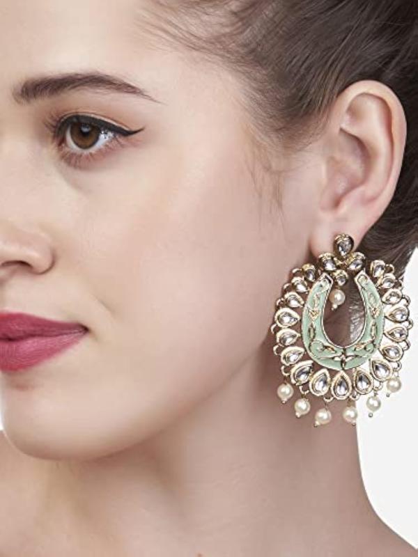 Add a touch of traditional elegance to your outfit with these stunning Meenakari Ethnic Kundan & Antique Drop Earrings. Handcrafted with intricate details, these earrings are perfect for special occasions and daily wear.