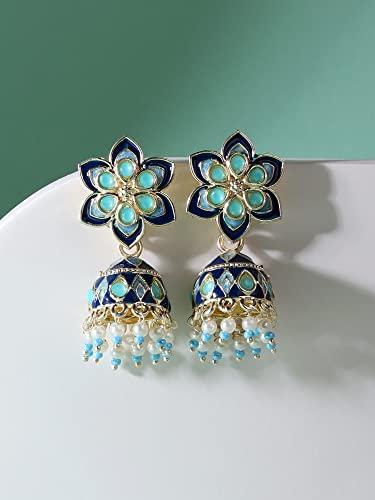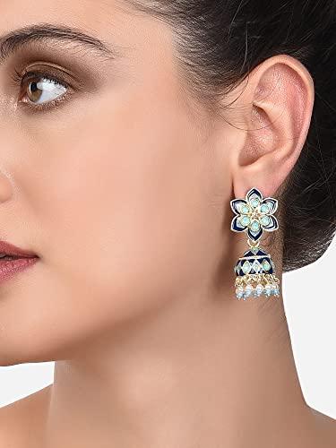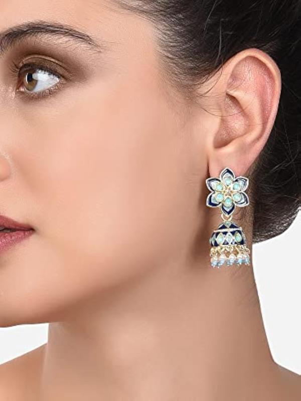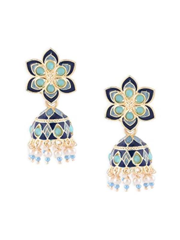 Traditional and elegant Meenakari flower design jhumki earring crafted for women.