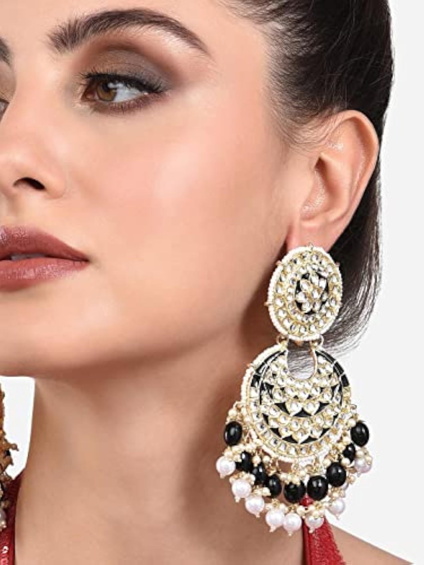 Add a touch of elegance with these Meenakari Kundan & Beads Dangle Earrings. Perfect for women who appreciate traditional craftsmanship and modern style.
