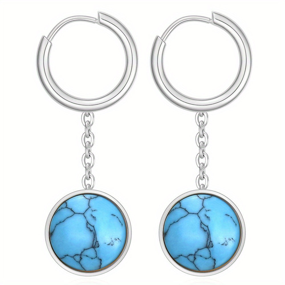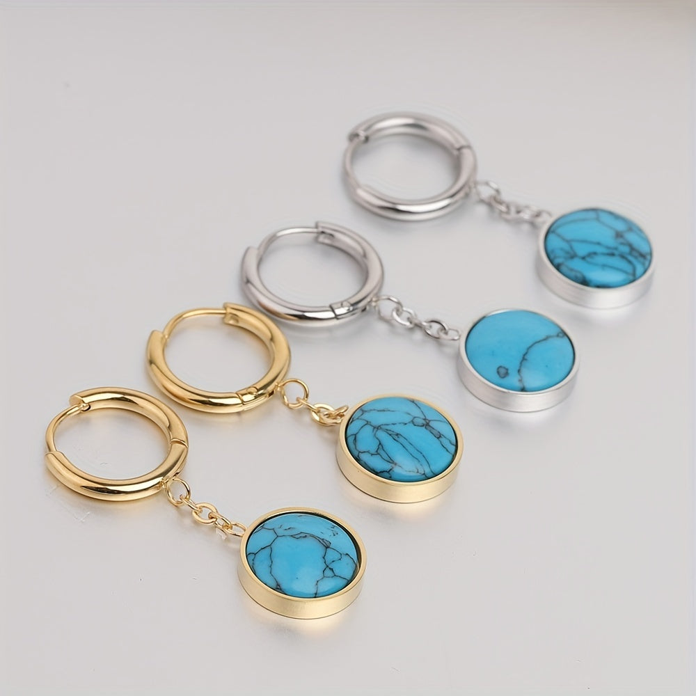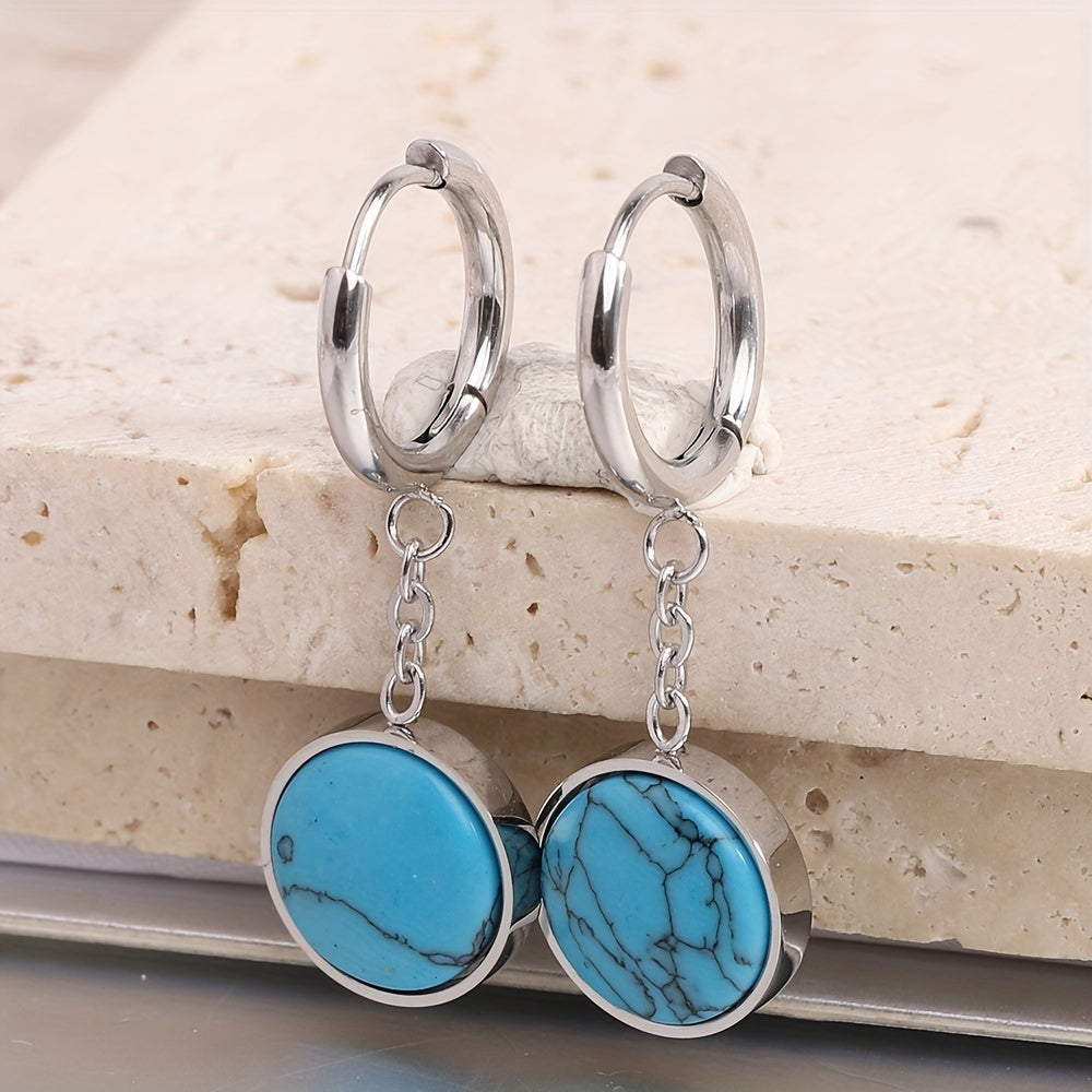 These stylish earrings are made of titanium steel and feature a 3D turquoise pendant design. Perfect for couples, these earrings are a great addition to any jewelry collection.