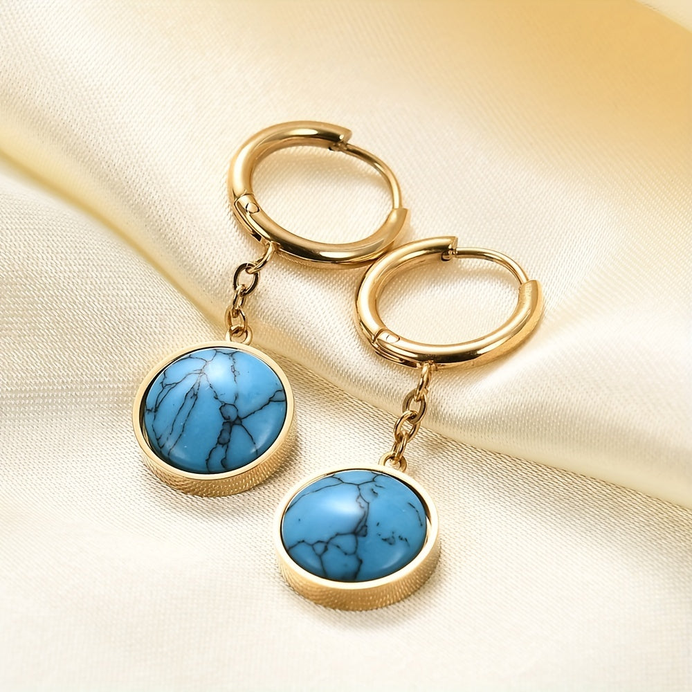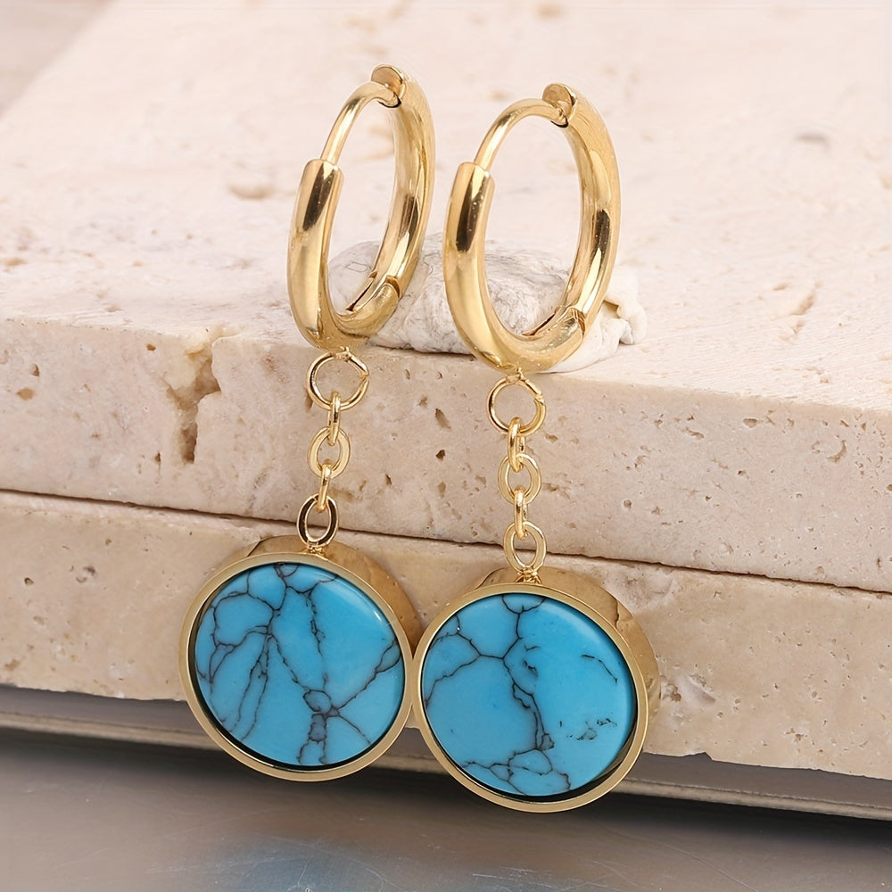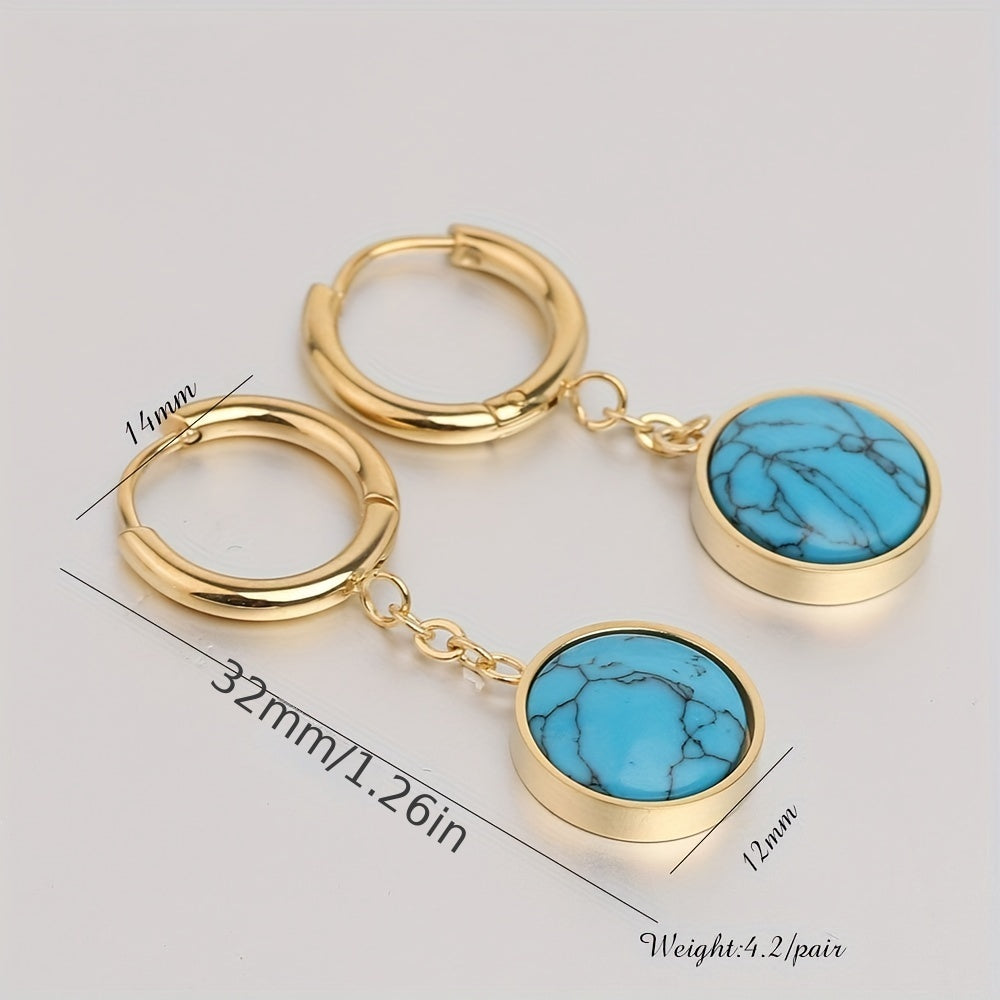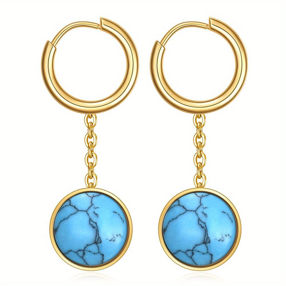 These stylish earrings are made of titanium steel and feature a 3D turquoise pendant design. Perfect for couples, these earrings are a great addition to any jewelry collection.
