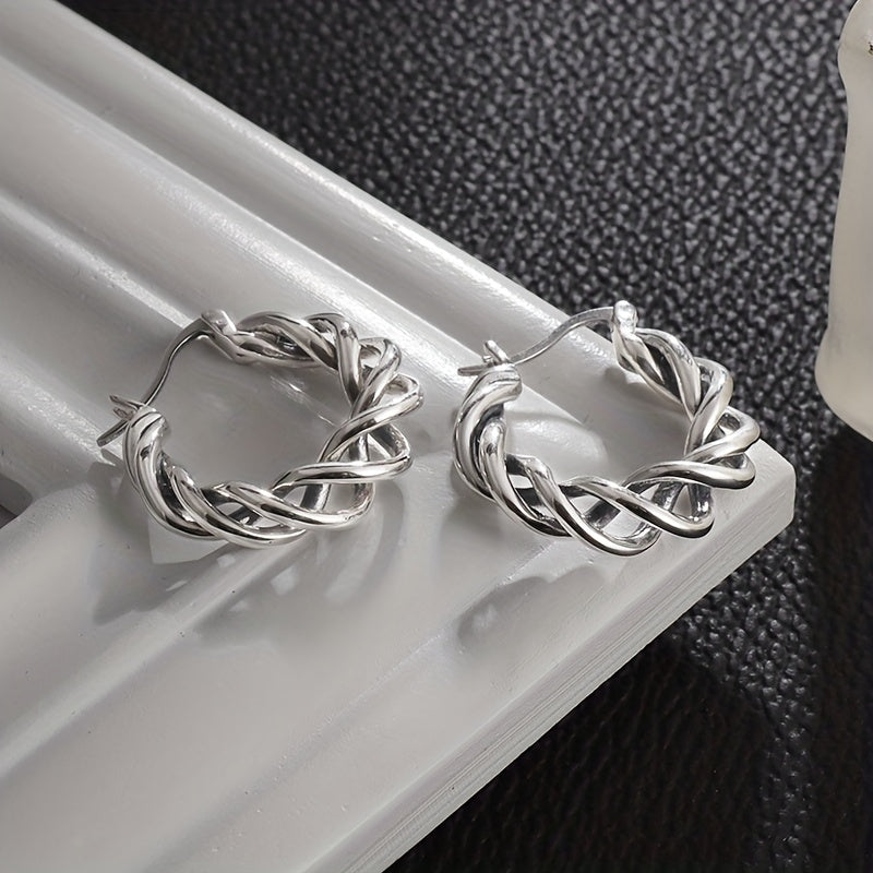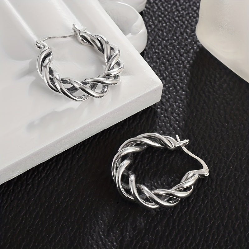 Stand out with these unique braided twisted hoop earrings. Perfect for parties and rock-inspired looks. Show off your style and make a statement with these earrings.