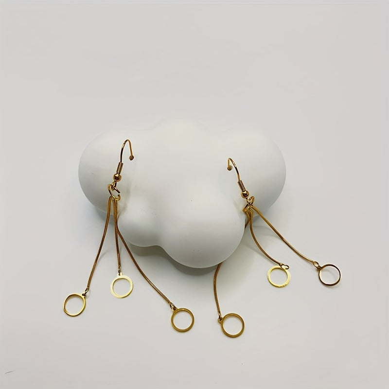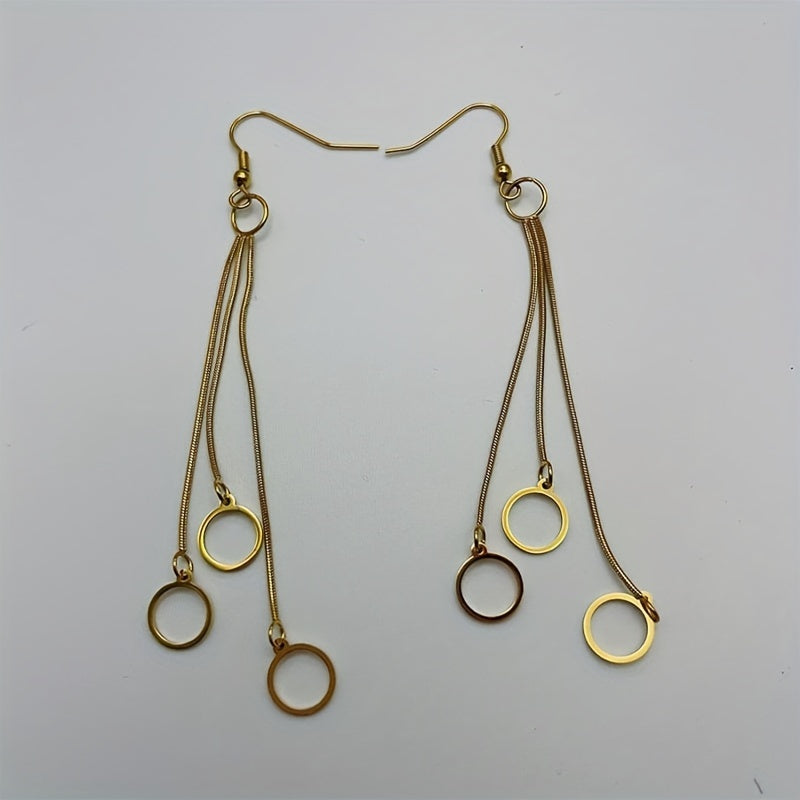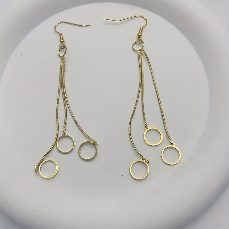 Elevate your style with these unique long drop earrings designed for men. The circle shape adds a modern touch to any outfit.