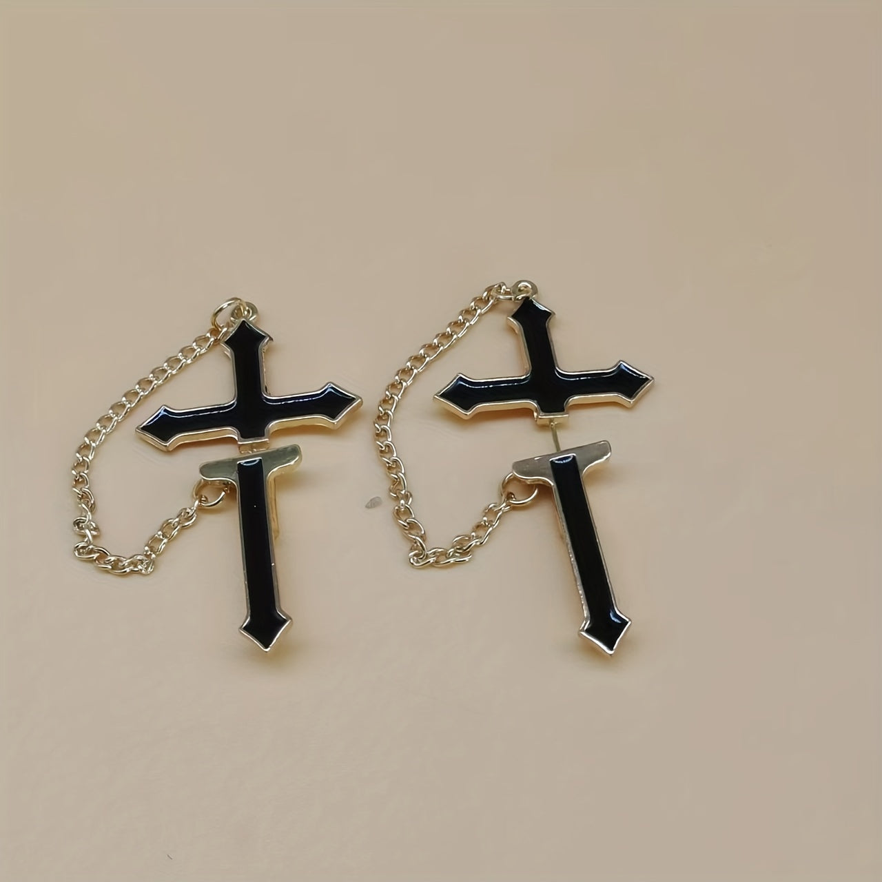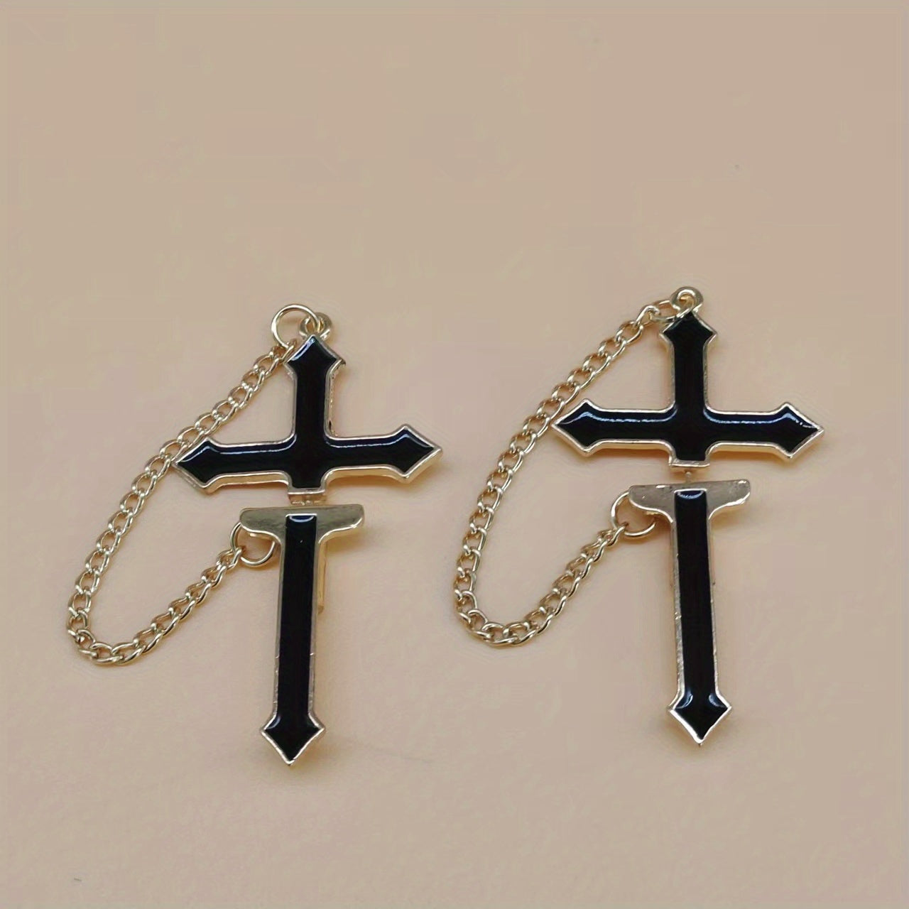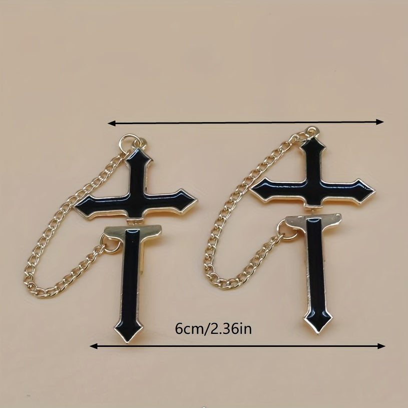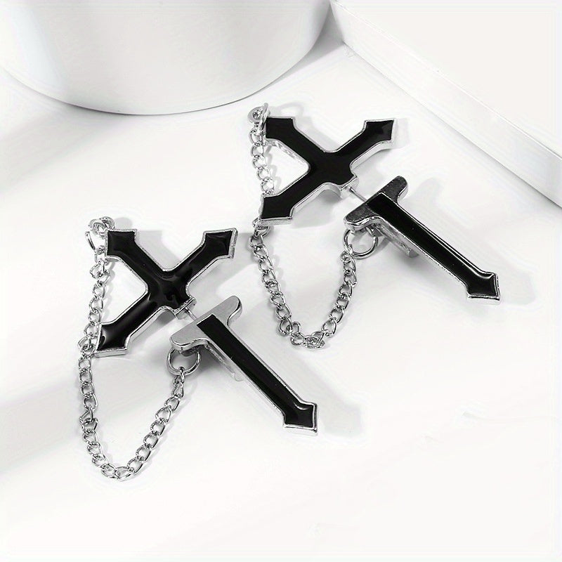 Add a touch of punk style to your look with these front and back cross chain earrings. Made of steel with a golden finish, these earrings are a unique piece of jewelry for men.