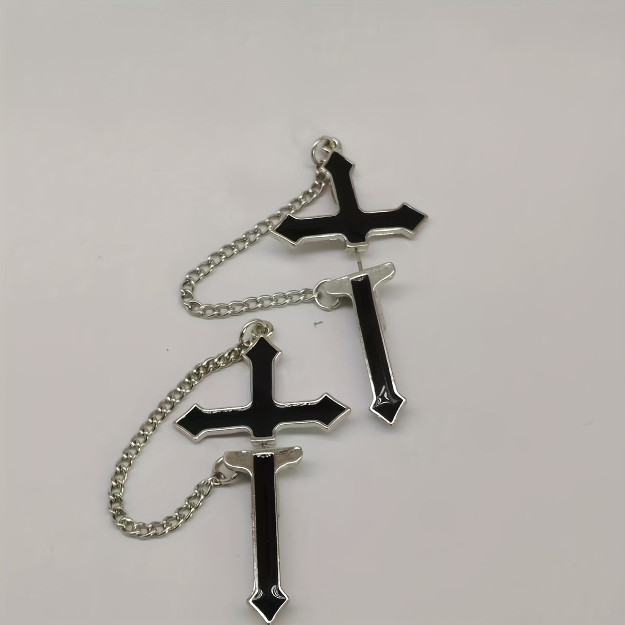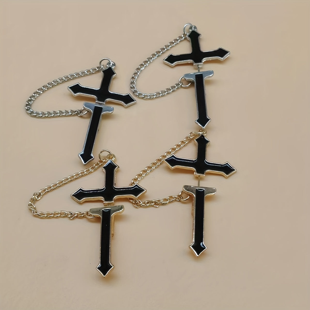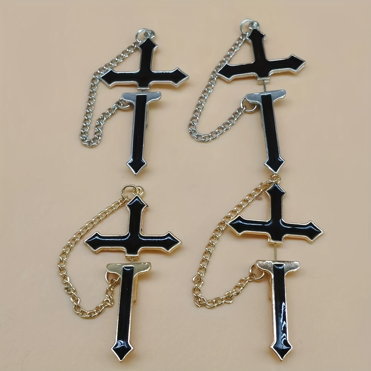 Add a touch of punk style to your look with these front and back cross chain earrings. Made of steel with a golden finish, these earrings are a unique piece of jewelry for men.