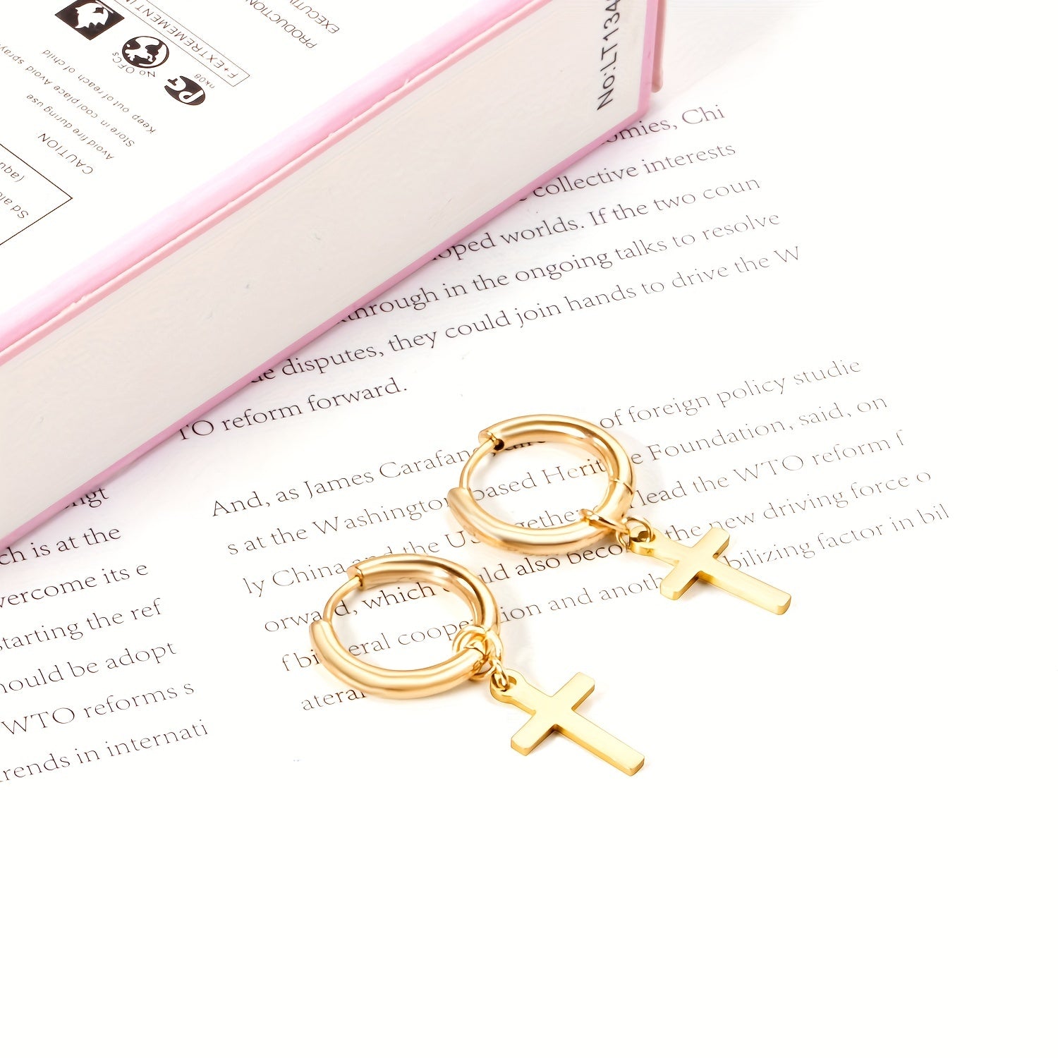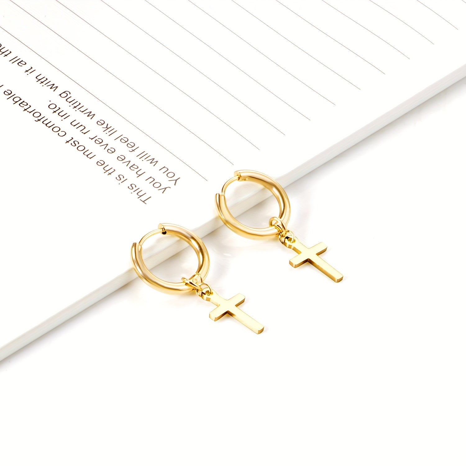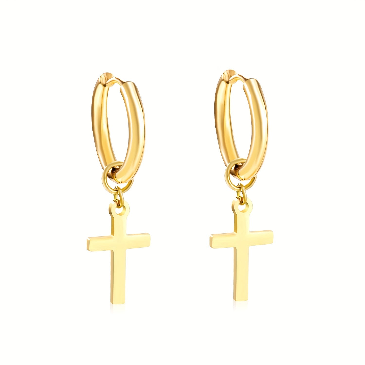 Enhance your style with these trendy cross dangle earrings, perfect for a hip hop look.