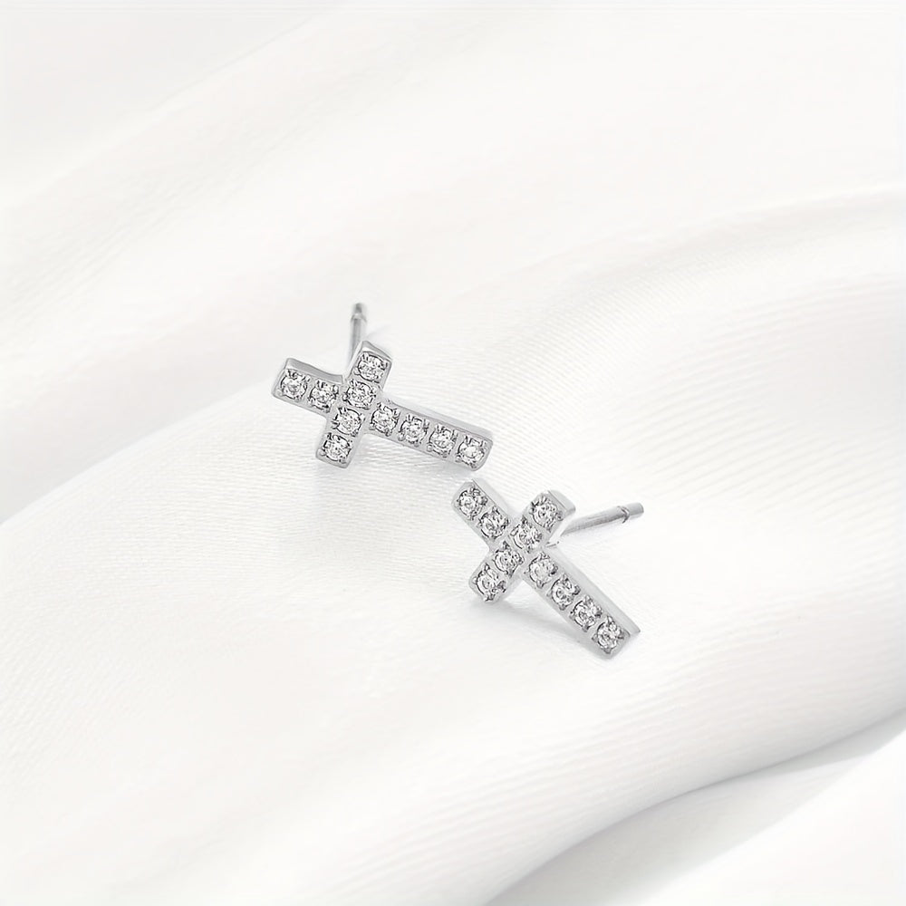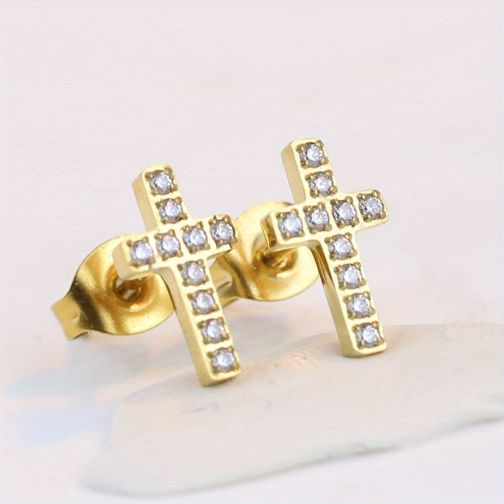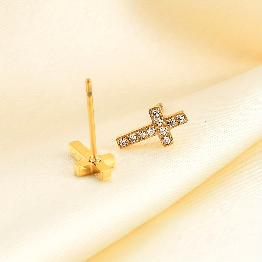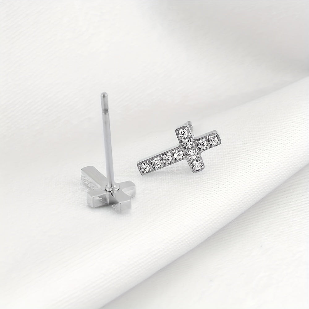 These earrings are crafted from zirconium titanium steel and feature a stylish cross inlay design. Great for couples or as individual accessories.