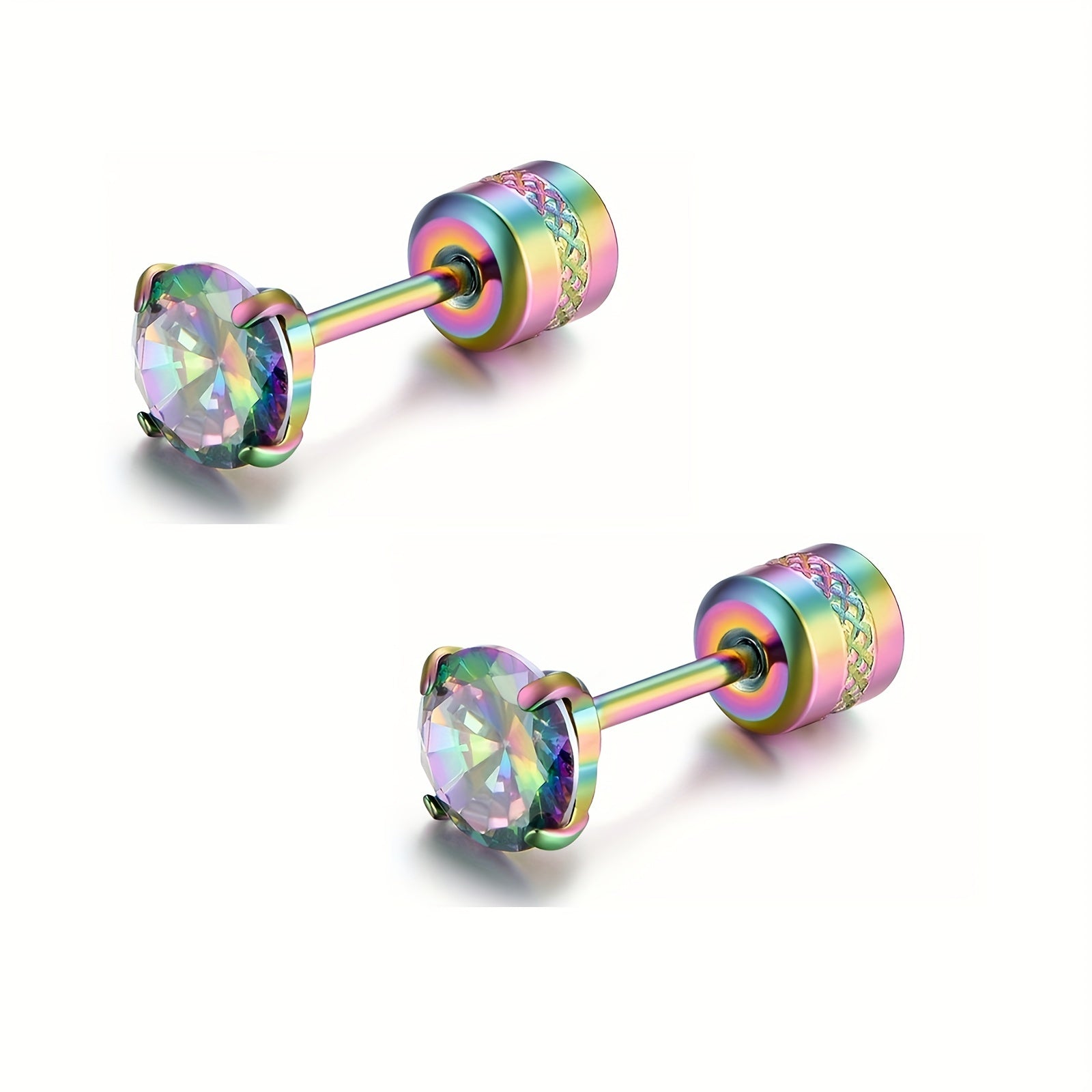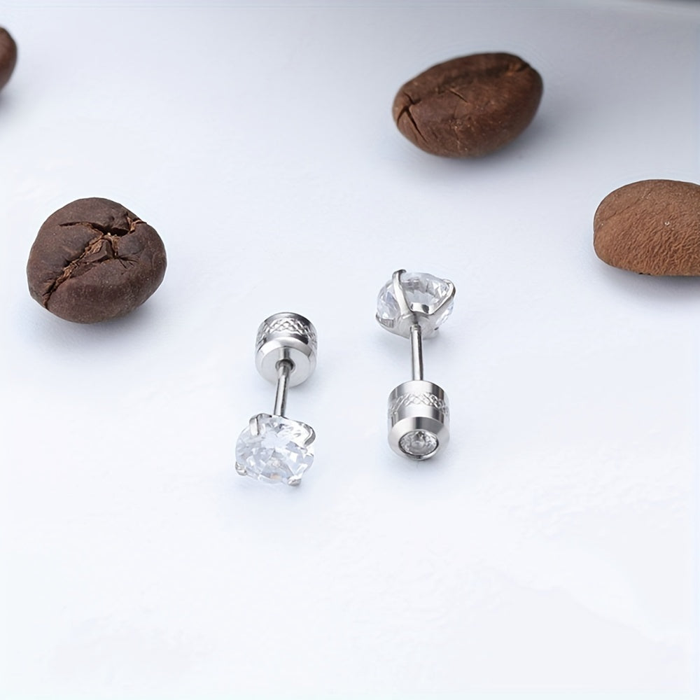 Enhance your style with these 4 pairs of cubic zirconia stud earrings. They feature a unique double side barbell design that adds a touch of sophistication to your look.