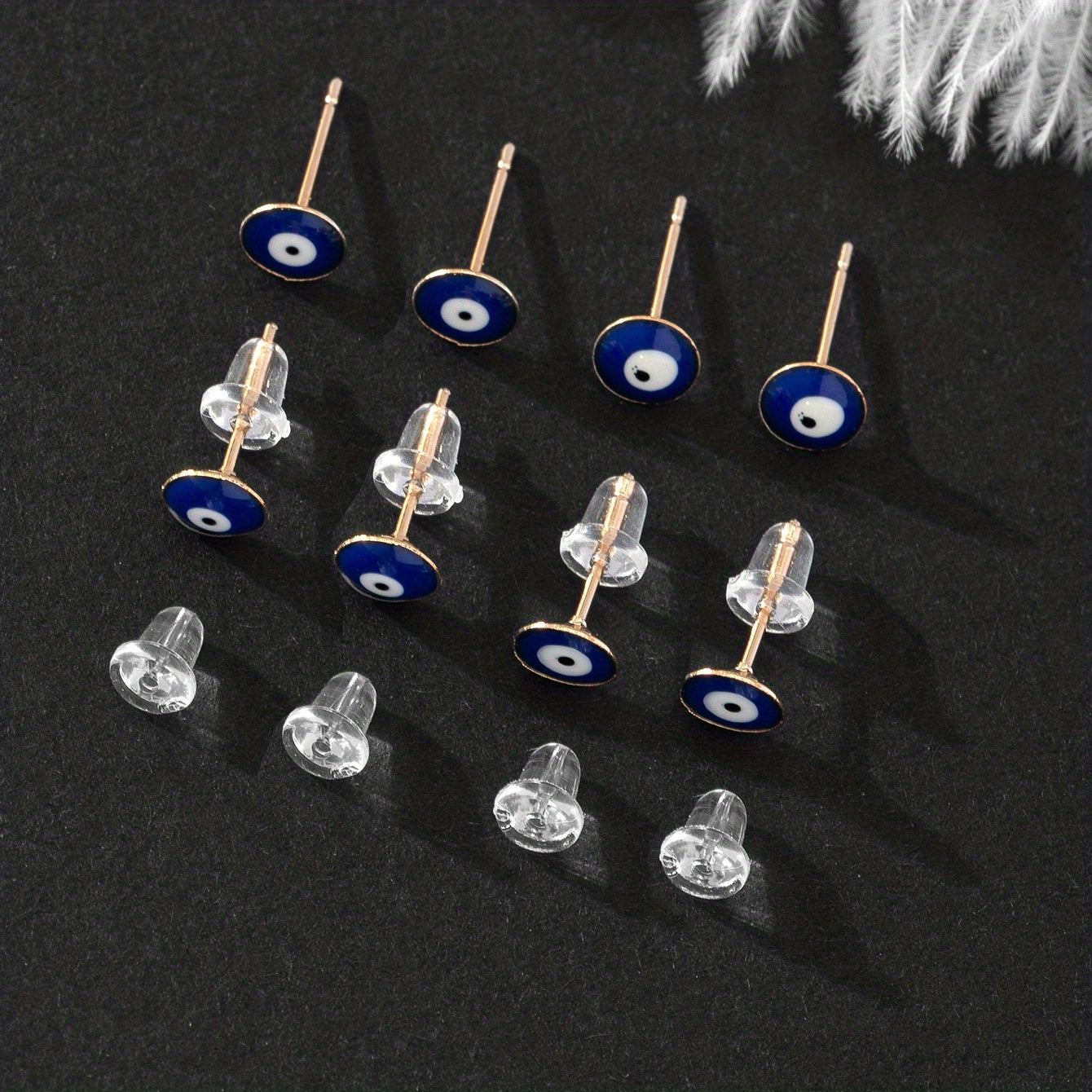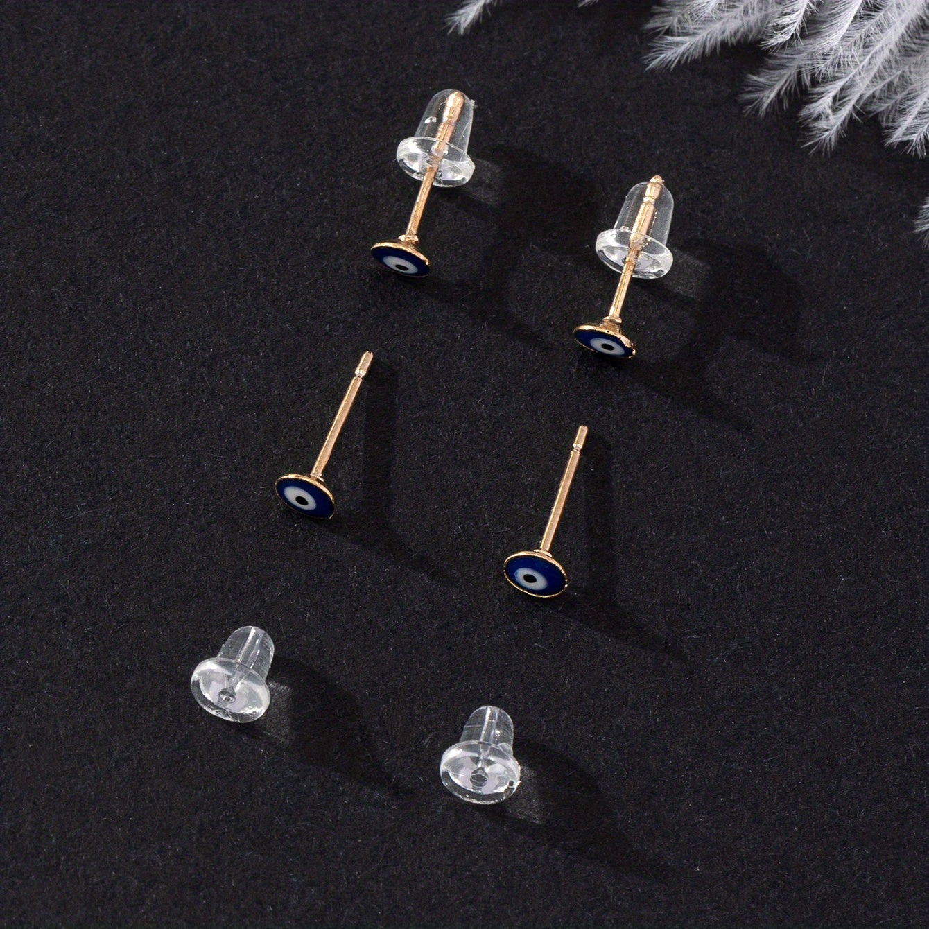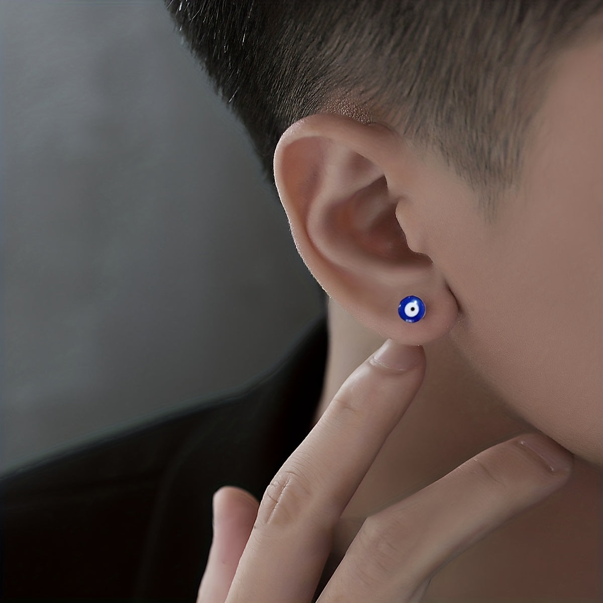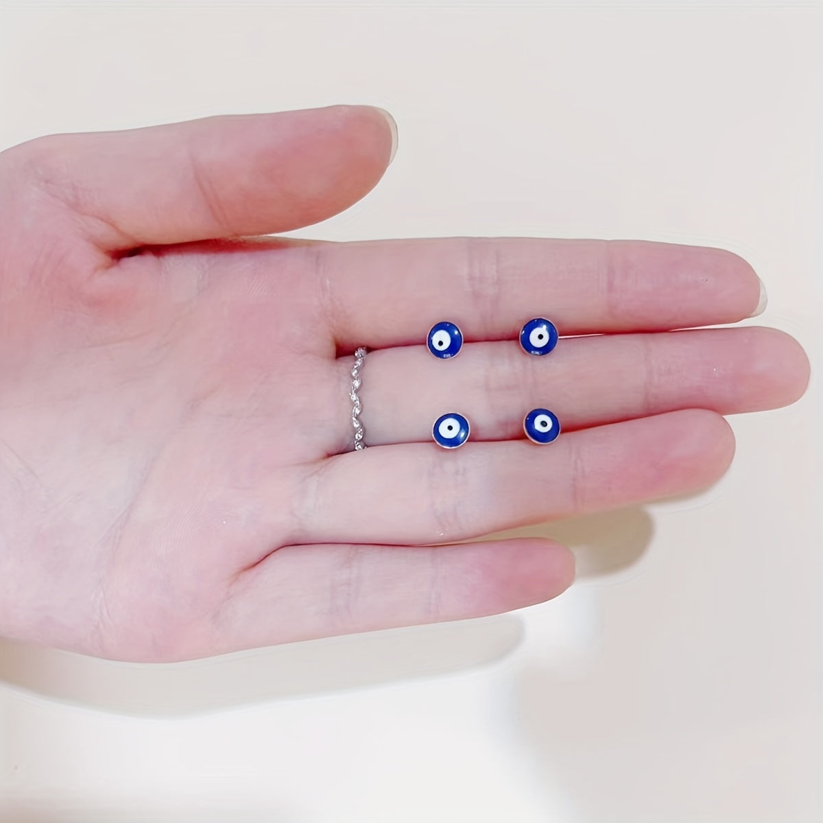 Enhance your style with this set of 4 pairs of demon eye stud earrings. Perfect for a bold and edgy look.