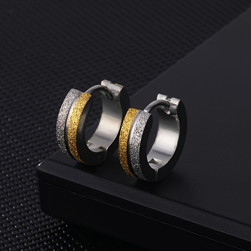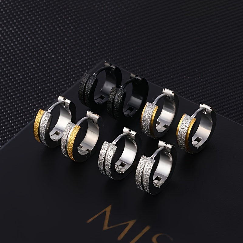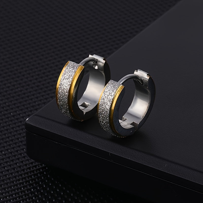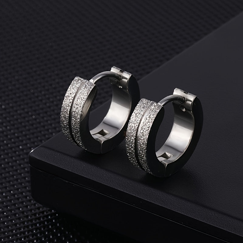 Enhance your style with these frosted stainless steel earrings designed for men.